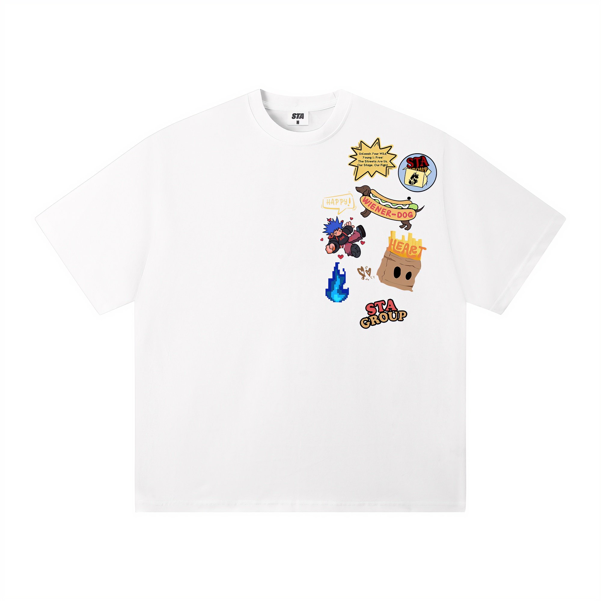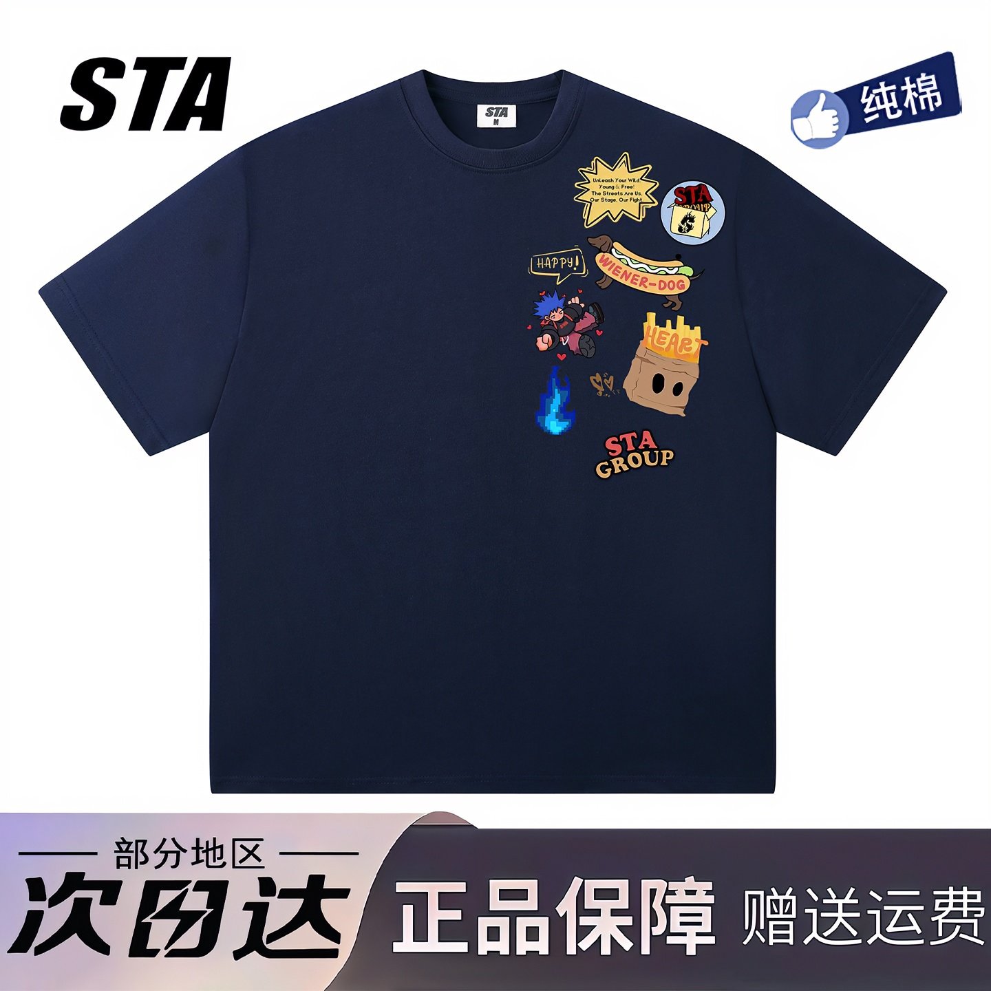 STA旗舰店美式潮牌趣味涂鸦卡通印花短袖夏季重磅纯棉宽松黑色t恤
