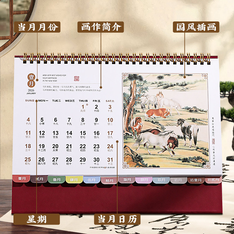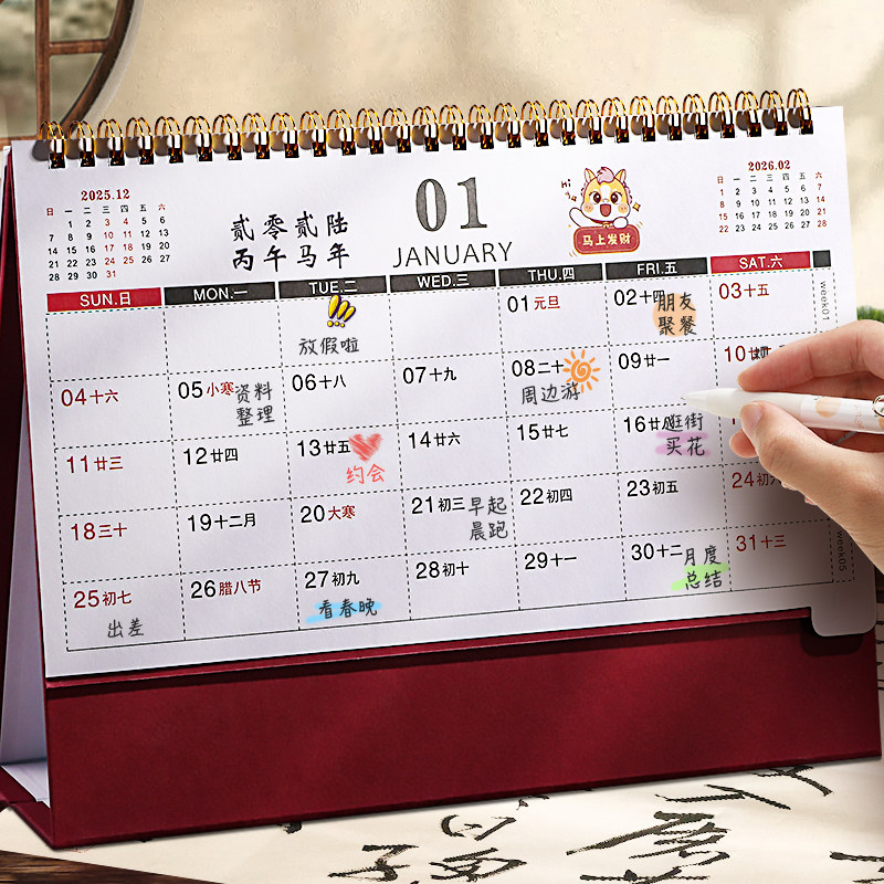 台历2026年新款日历定制logo创意简约小清新韩式办公年历个性中国风桌面摆件商务工作记事计划本订制广告月历