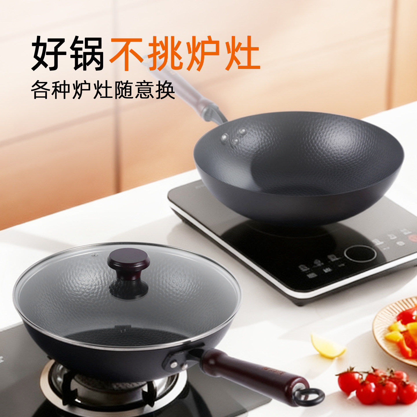 章丘炒菜锅传统铁锅官方旗舰老式炒锅家用不粘锅无涂层燃气灶适用