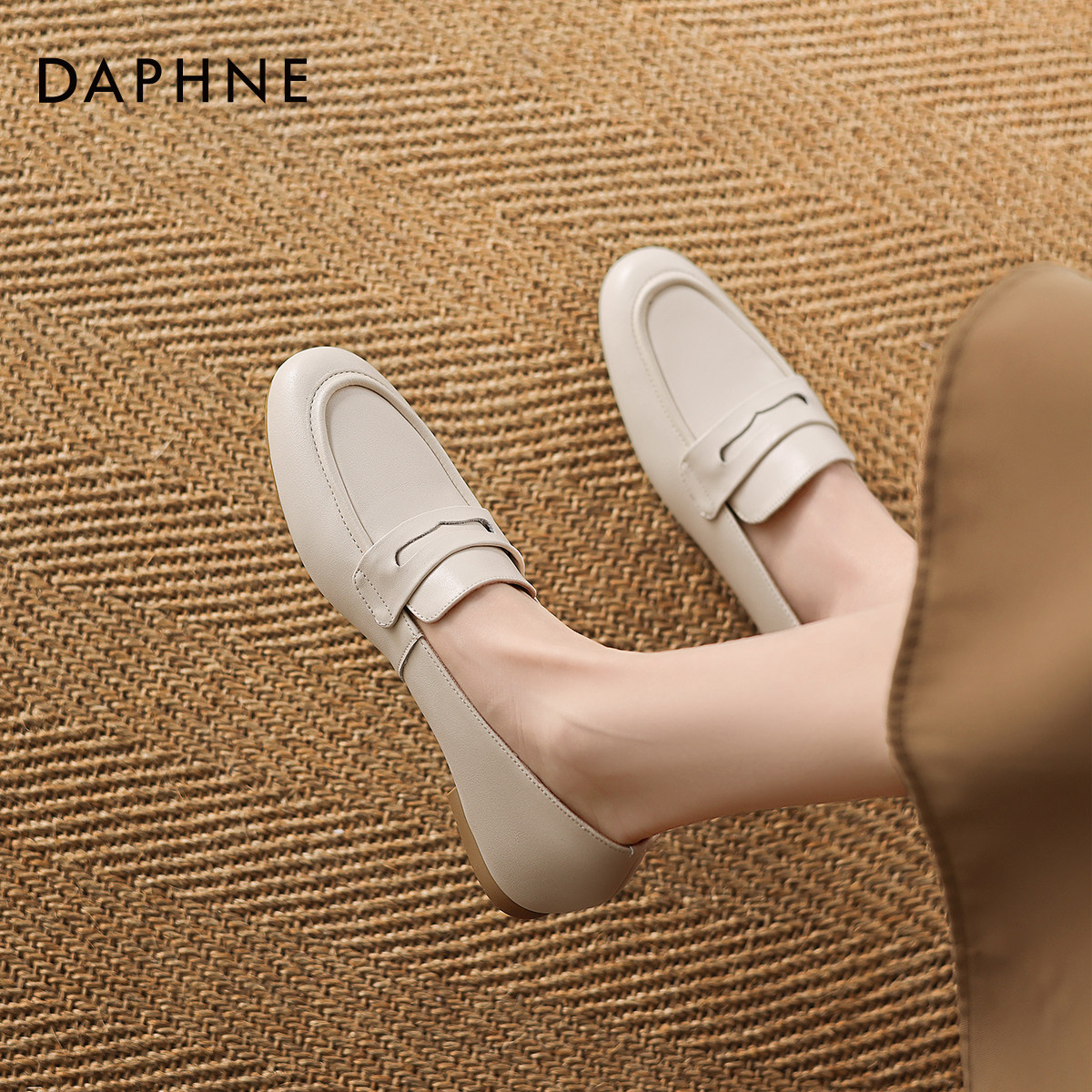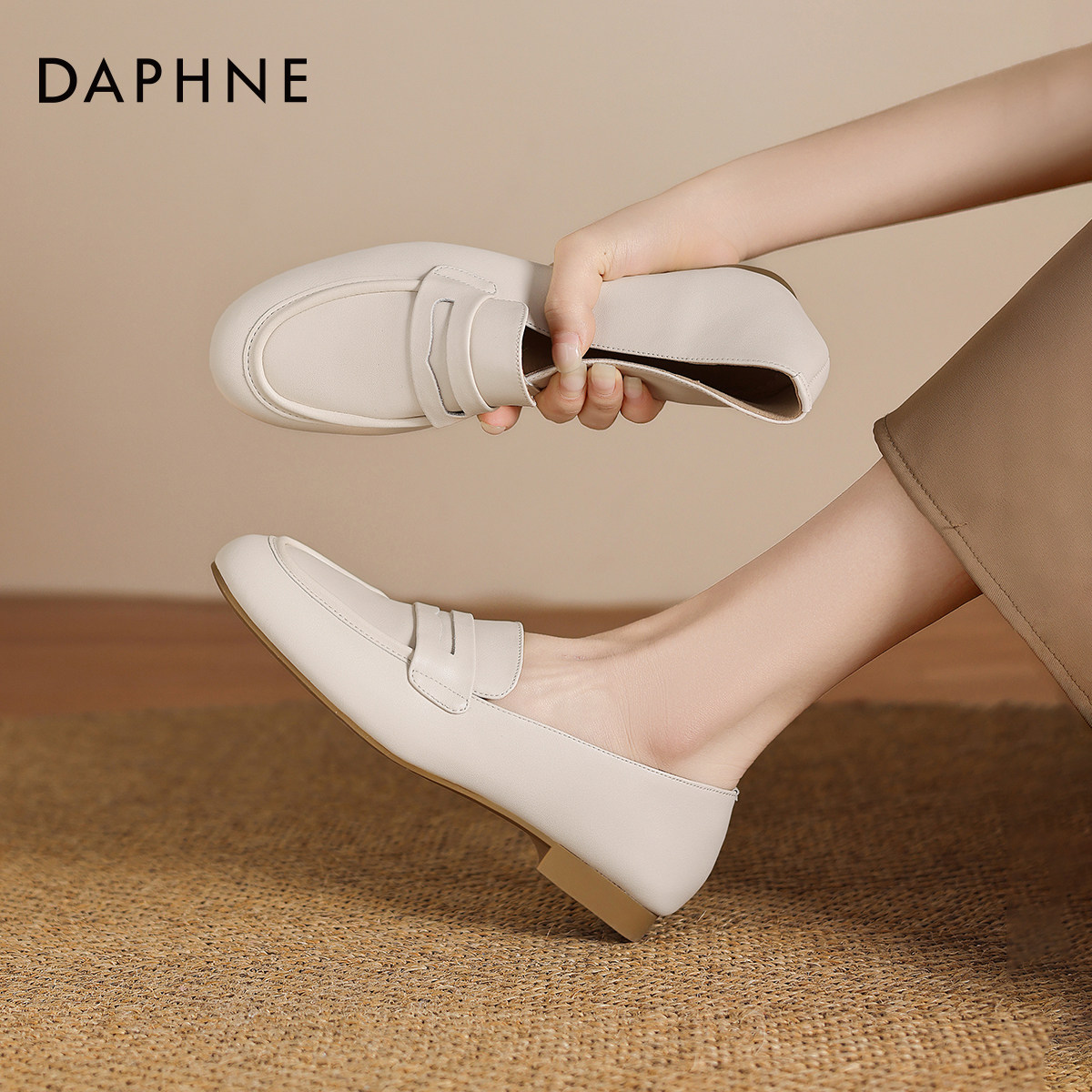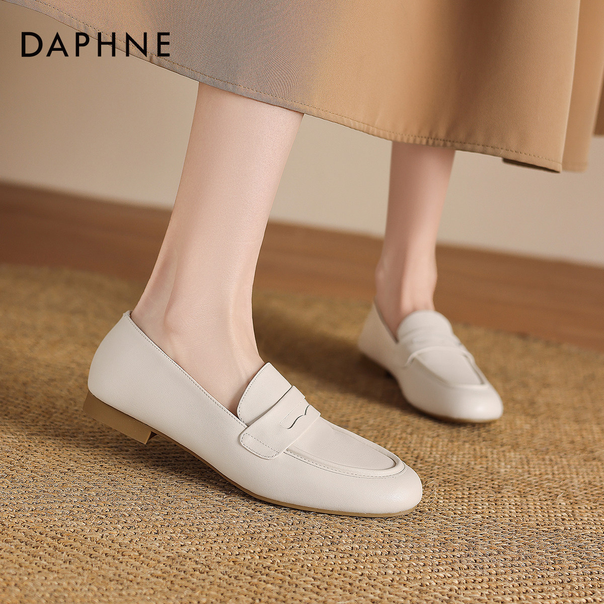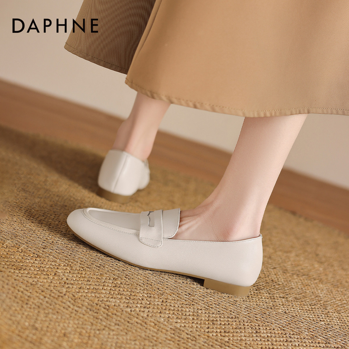 达芙妮白色乐福鞋女2026新款春季英伦风小皮鞋平底通勤单鞋豆豆鞋