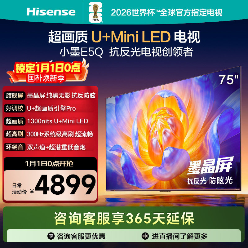海信电视E5Q 75英寸 U+MiniLED墨晶屏 高刷 以旧换新补贴电视机