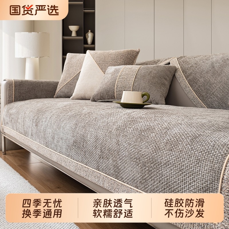 新款轻奢皮沙发垫四季通用高端盖布防滑雪尼尔坐垫套罩巾高级感