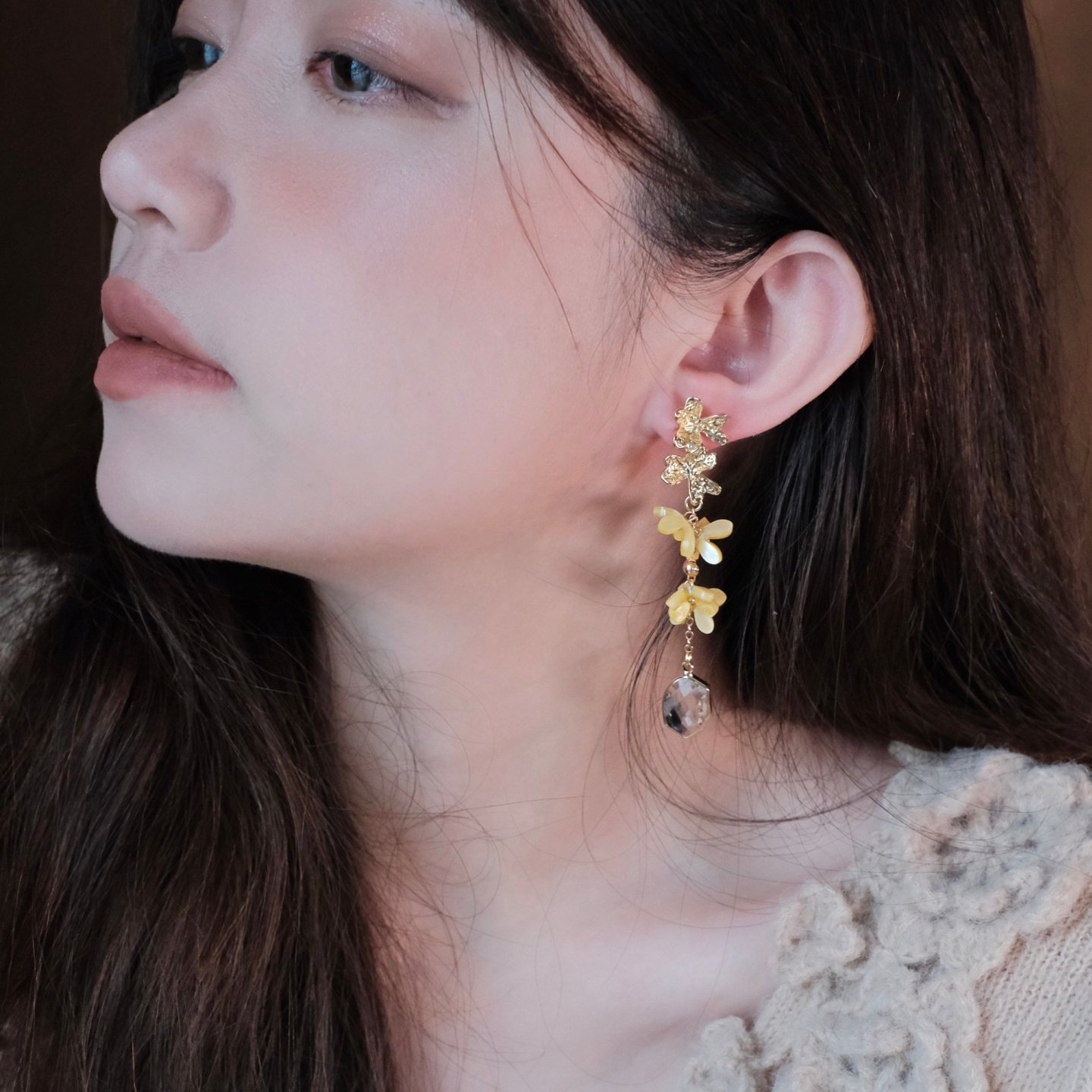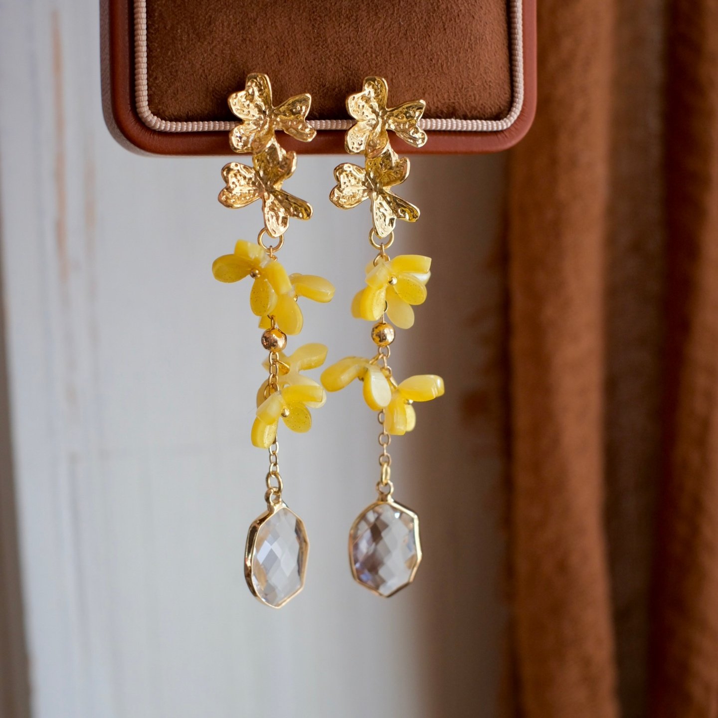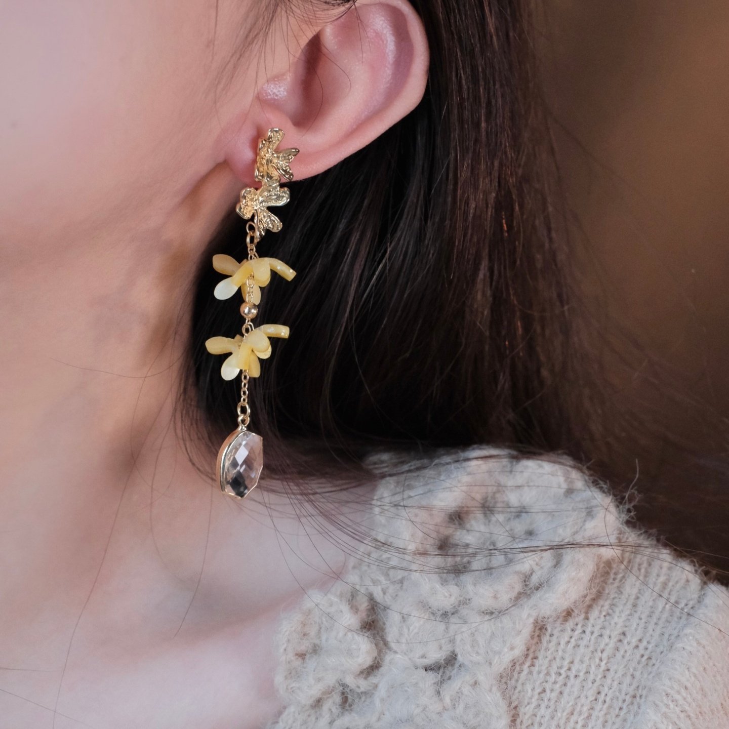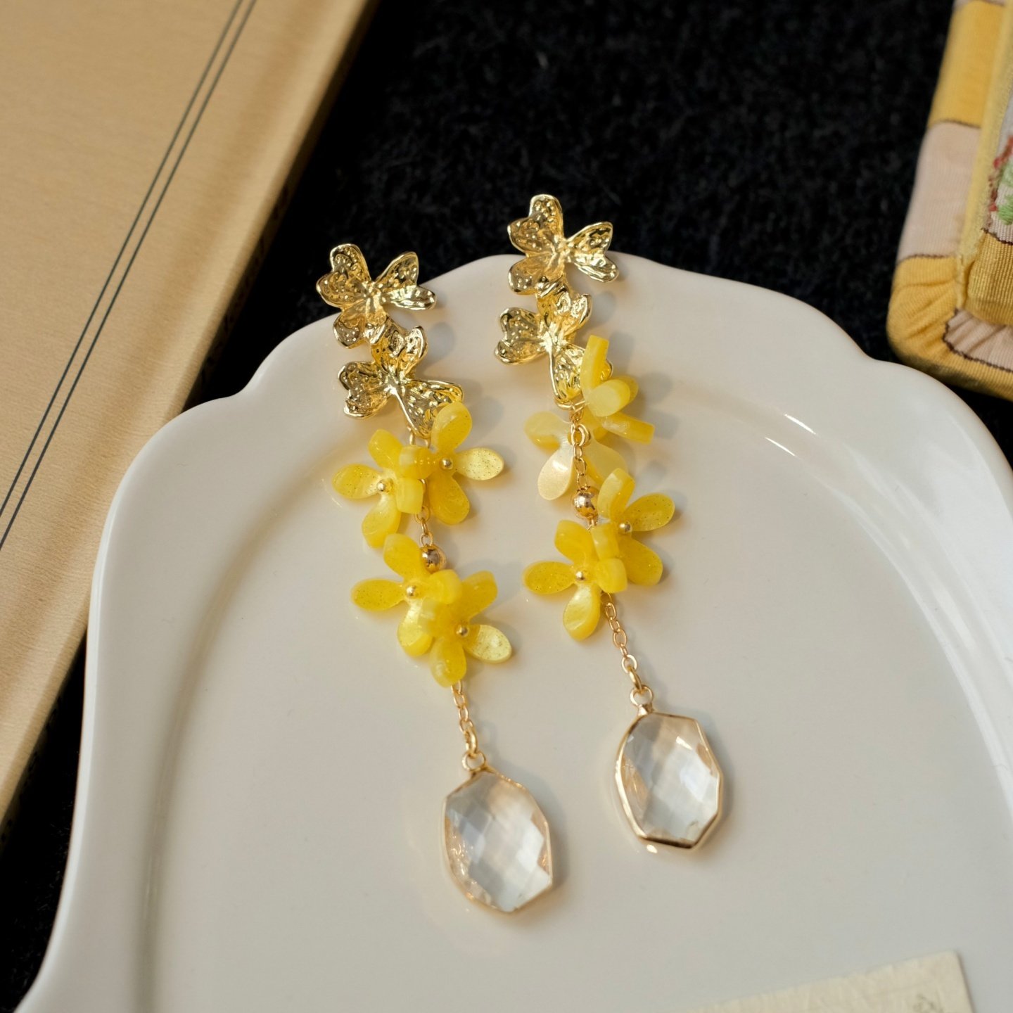 《江南金桂》原创秋冬超仙文艺森系黄色花朵流苏长款耳钉耳环耳饰