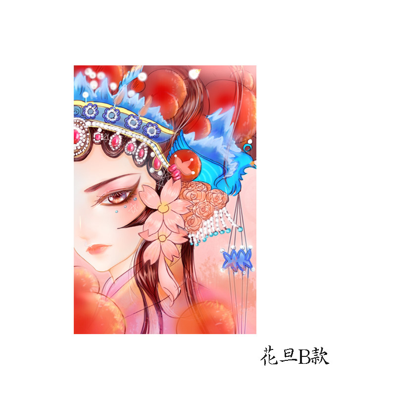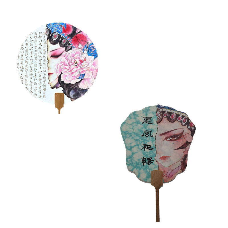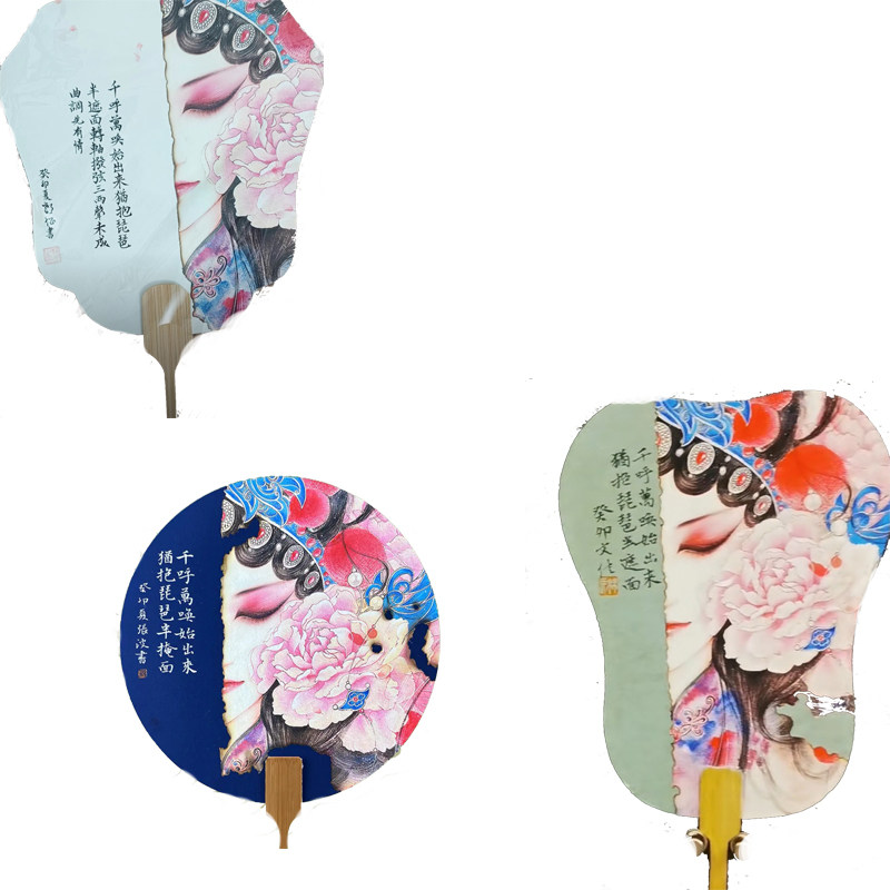 微喷国古风花旦宣纸脸谱团扇diy图案仕女扇子A4唱戏手绘定制卡通