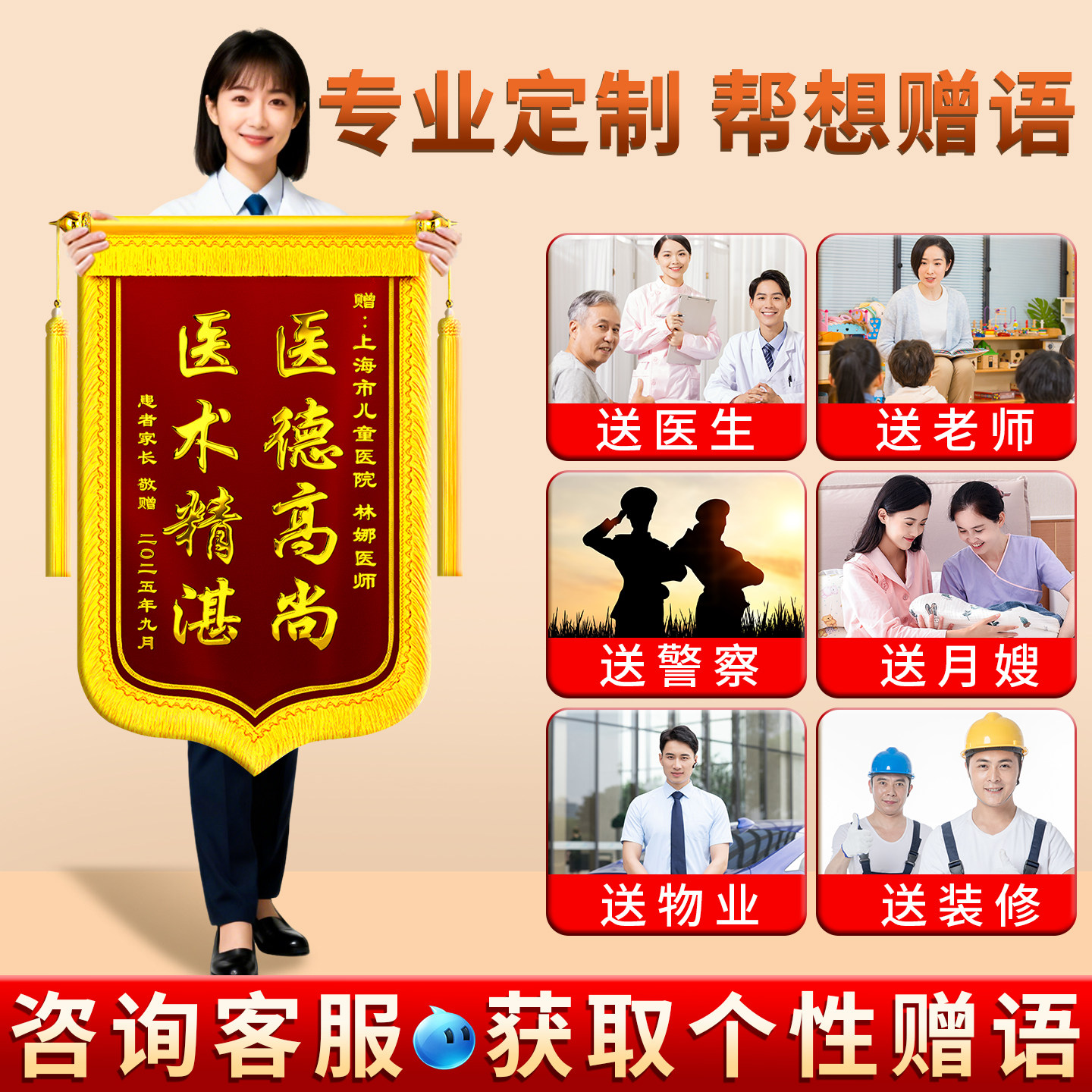 高档锦旗定制定做感谢医生护士红色挂式定制旗帜刺绣送幼儿园老师月嫂月子中心送教师律师民警高端旌旗制作