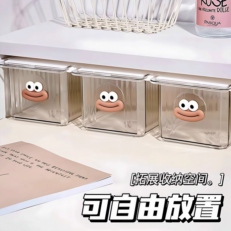 镜柜大嘴收纳神器卫生间透明棉签化妆卸妆棉抽屉式浴室可爱收纳盒