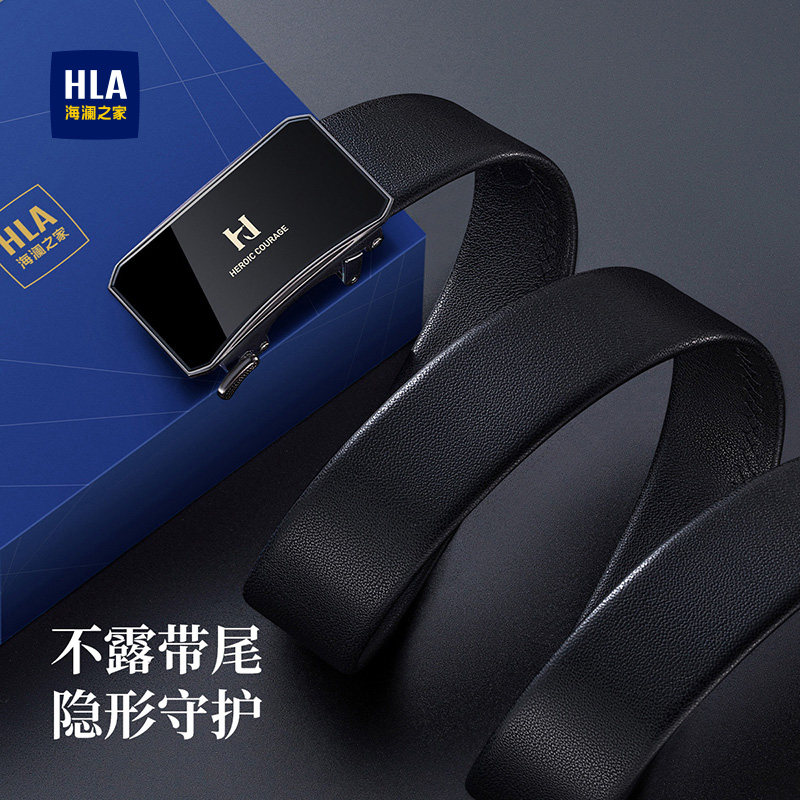 海澜之家真皮皮带男士内穿腰带自动扣2025新款商务年轻人牛皮裤带