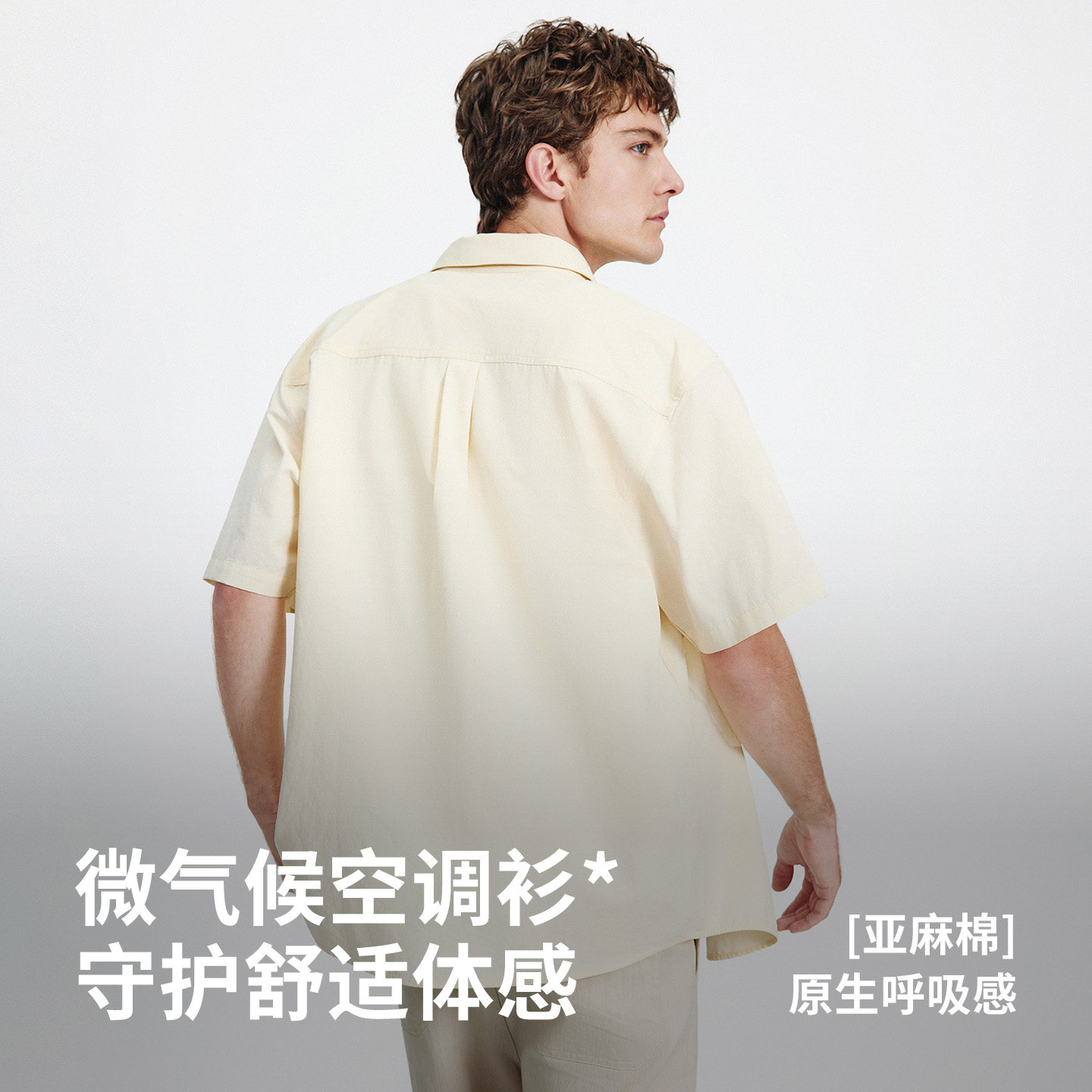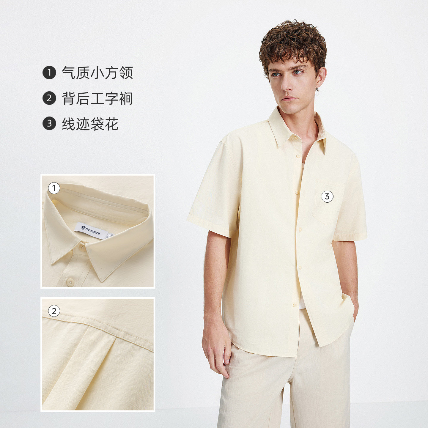 Navigare意大利小帆船2026夏季黄色短袖衬衫男宽松方领亚麻衬衣