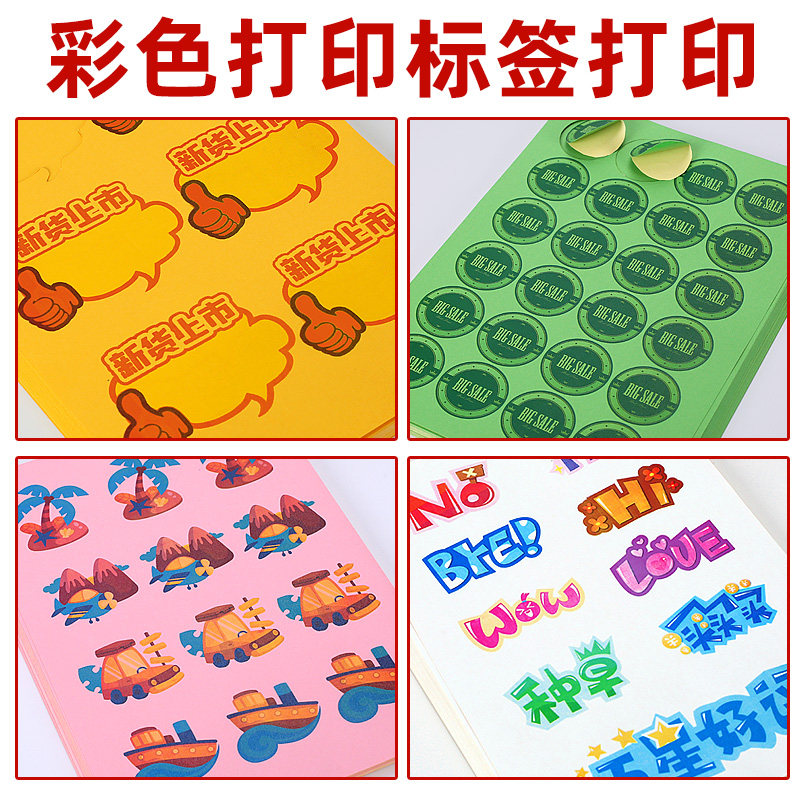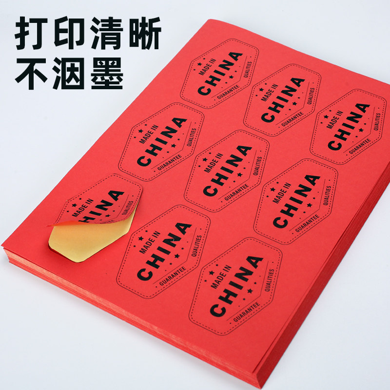 A4彩色不干胶标签打印纸喷墨激光铜版条码纸混色红色橙色黄色绿色紫色蓝色粉色书写广告背胶贴纸空白纸箱贴纸