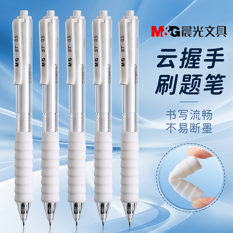 晨光中性笔按动黑笔速干顺滑签字笔学生专用刷题笔水性笔高颜值ins风红笔蓝笔碳素笔黑色圆珠笔云握手考试笔