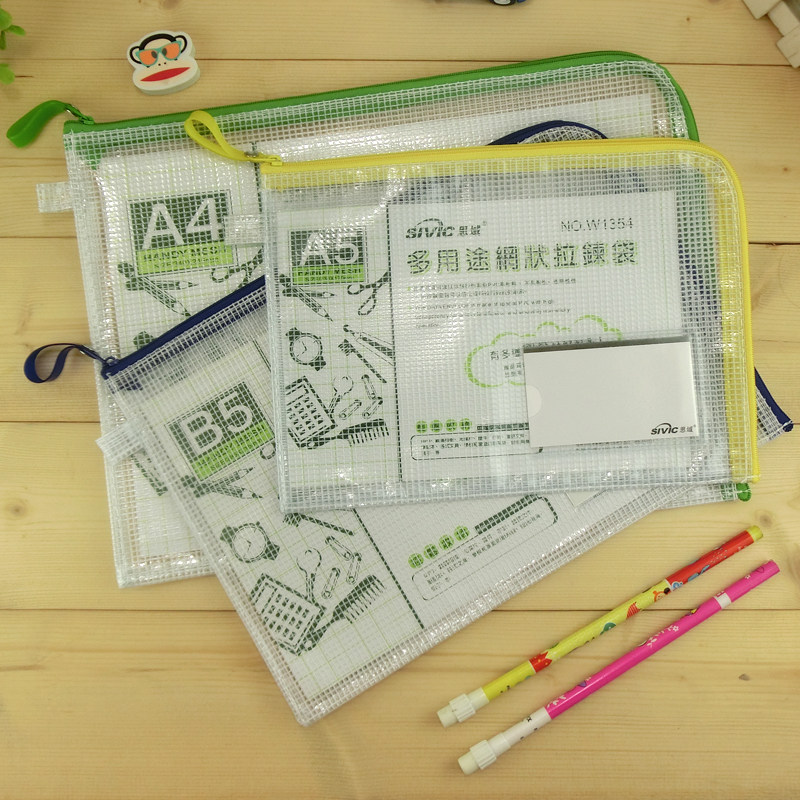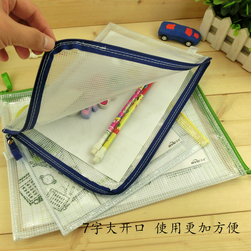 网格文件袋加厚透明网格拉链袋A4试卷收纳袋学生用考试文具袋防水笔袋办公用品批发公文档案袋资料袋包邮