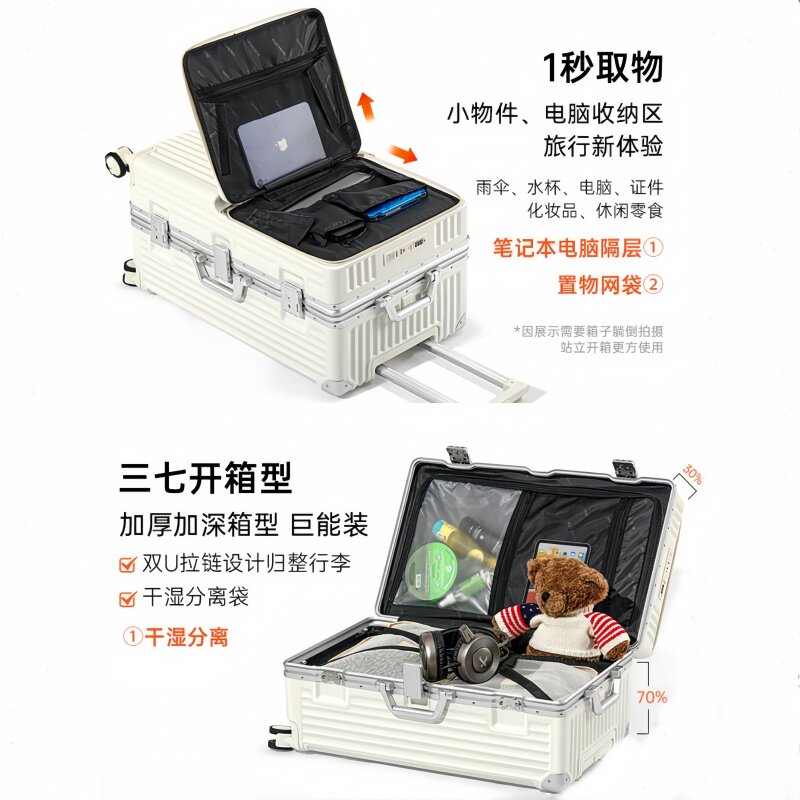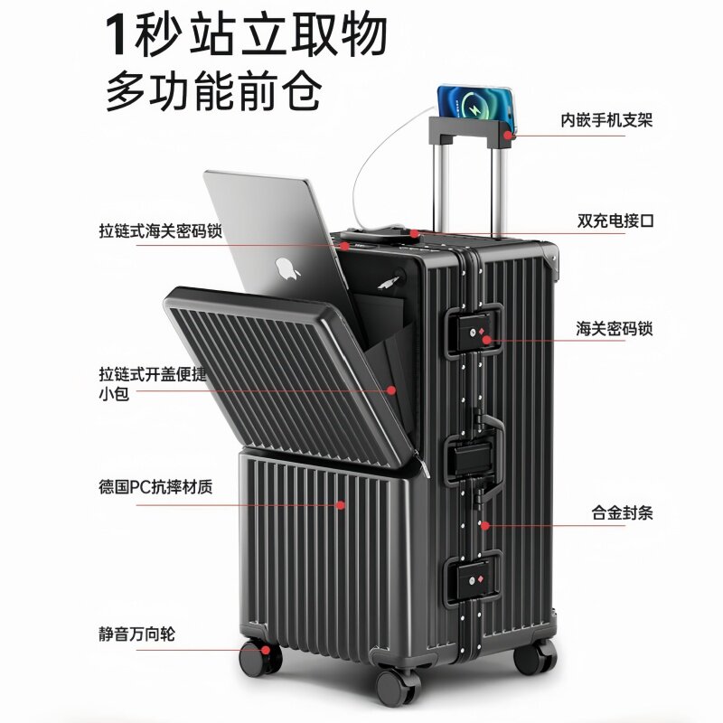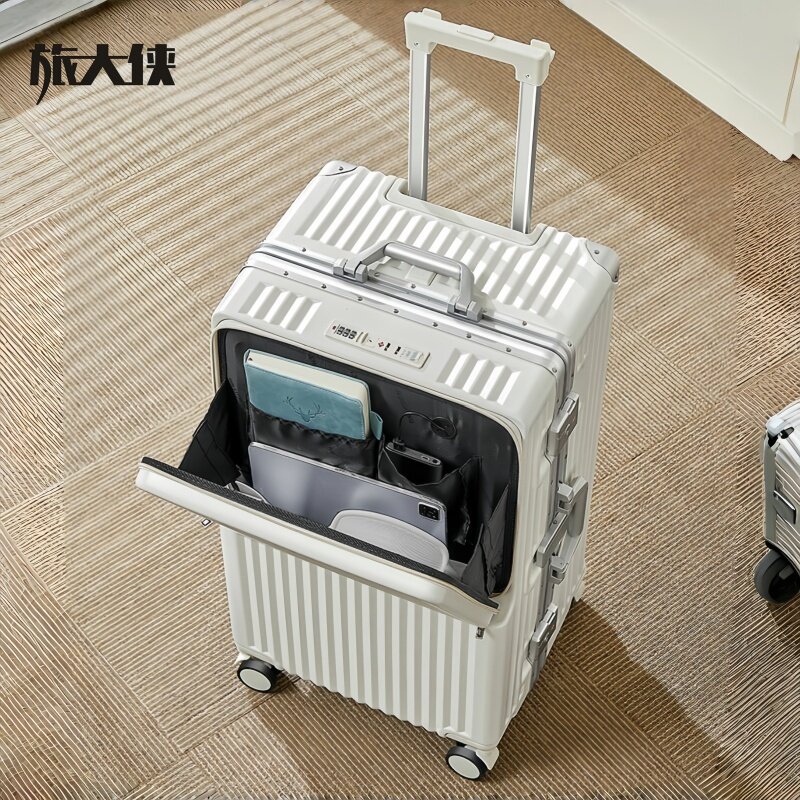 旅大侠前开口铝框行李箱女万向轮多功能拉杆箱超大容量旅行箱男