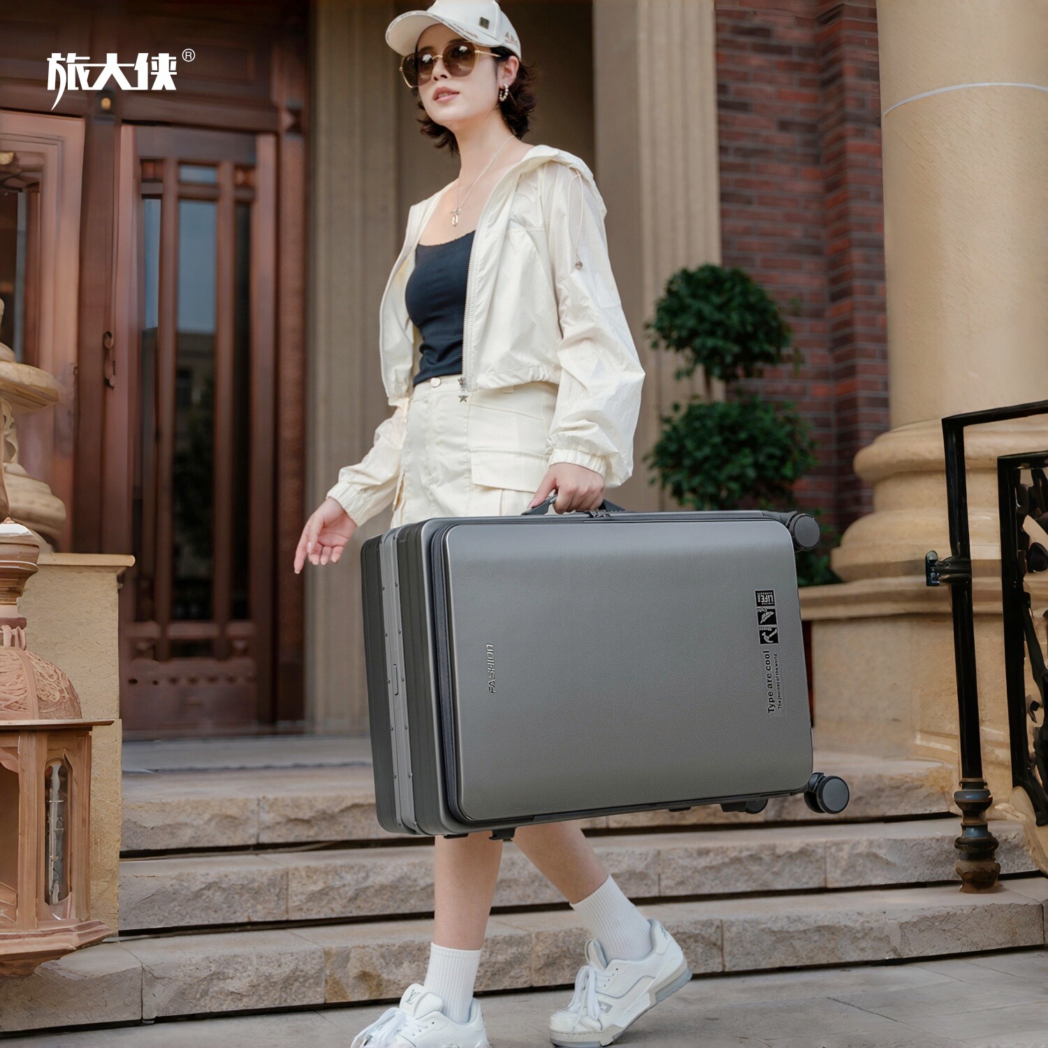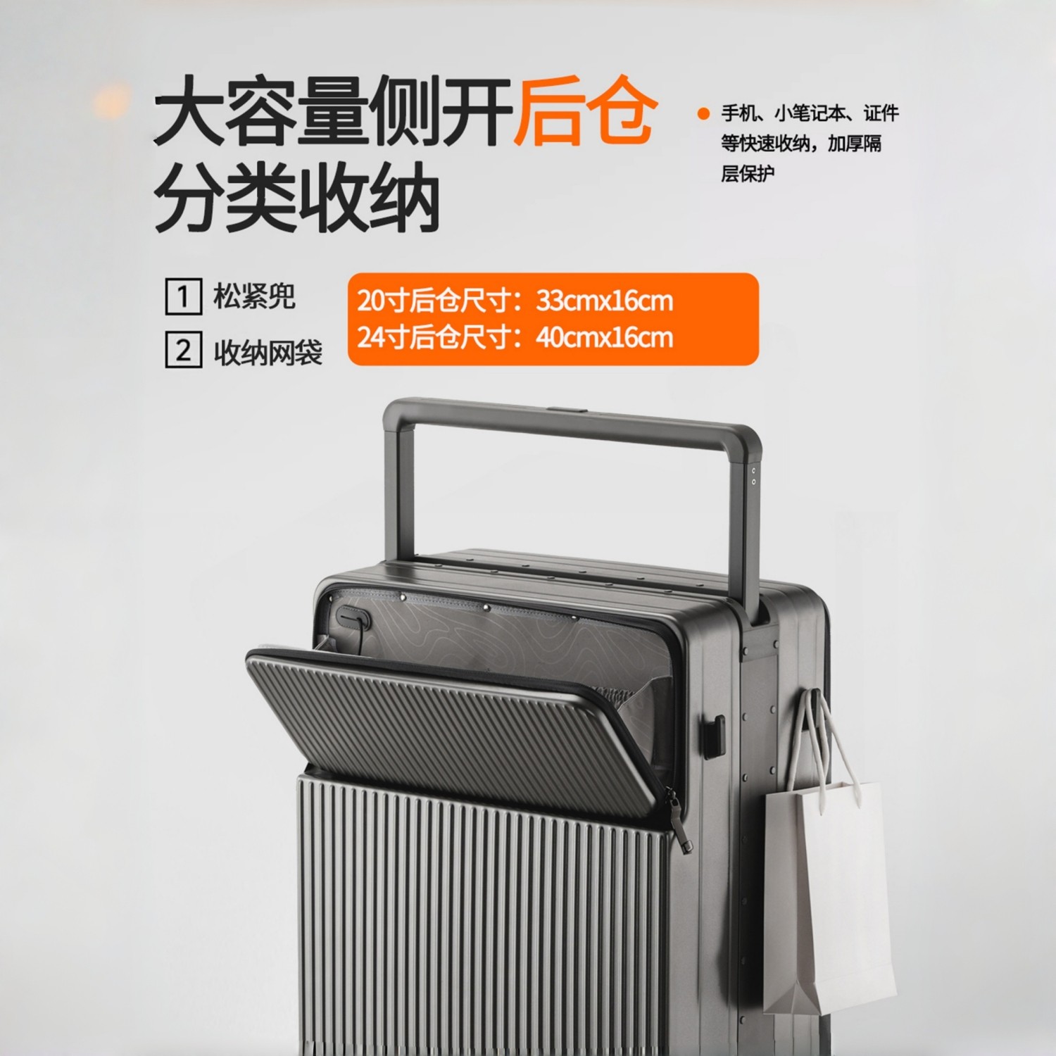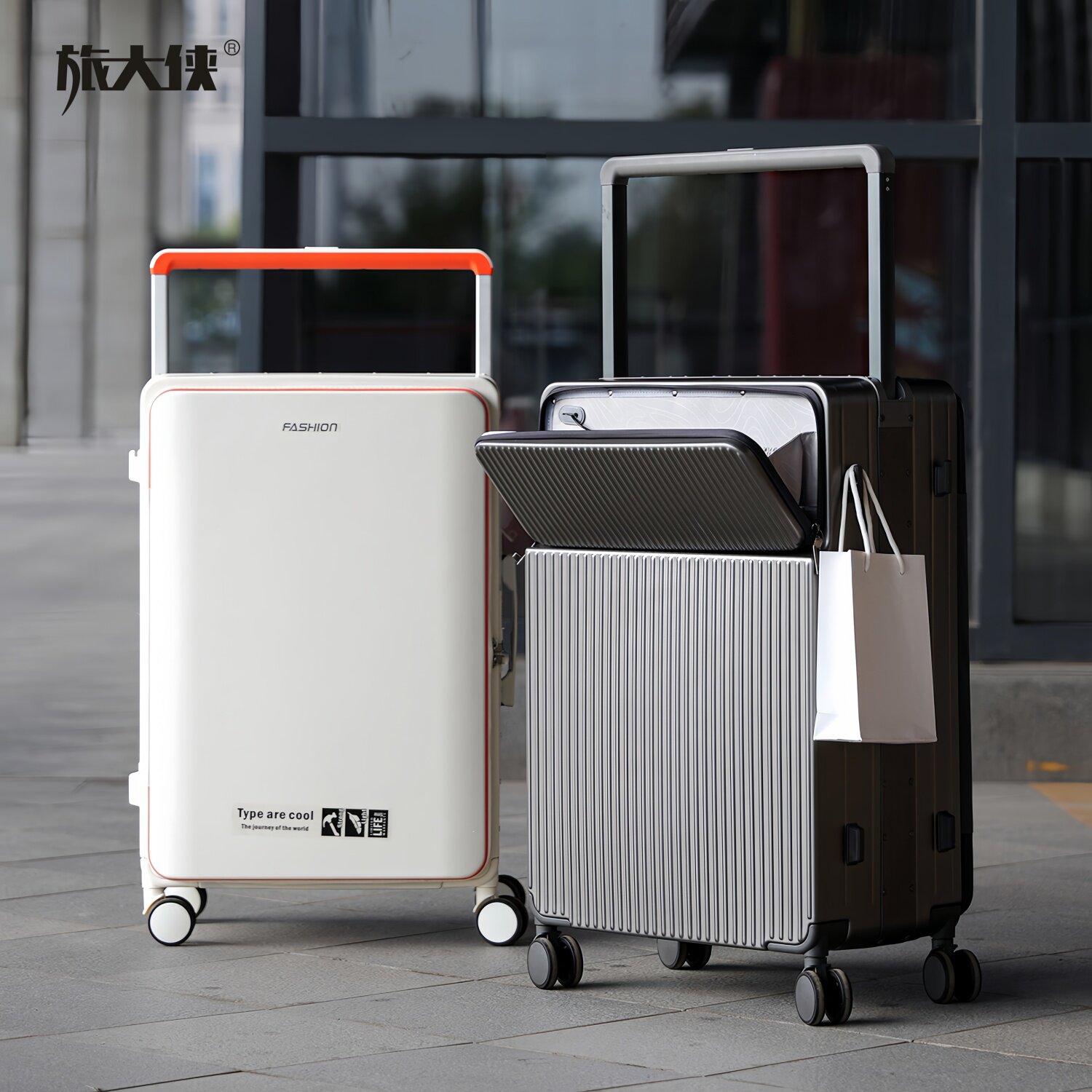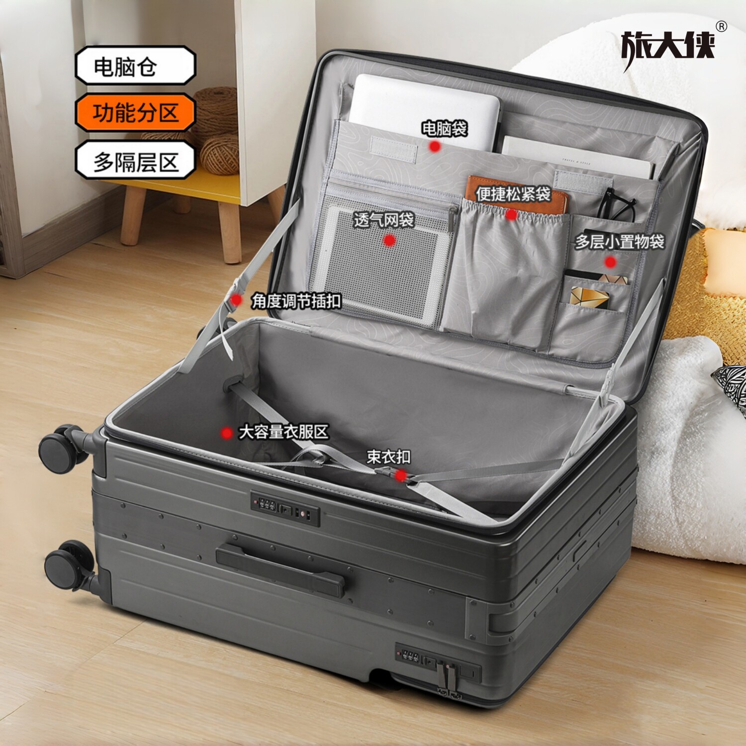 旅大侠前开盖行李箱女2026新款中置宽拉杆箱20寸登机密码箱铝框箱