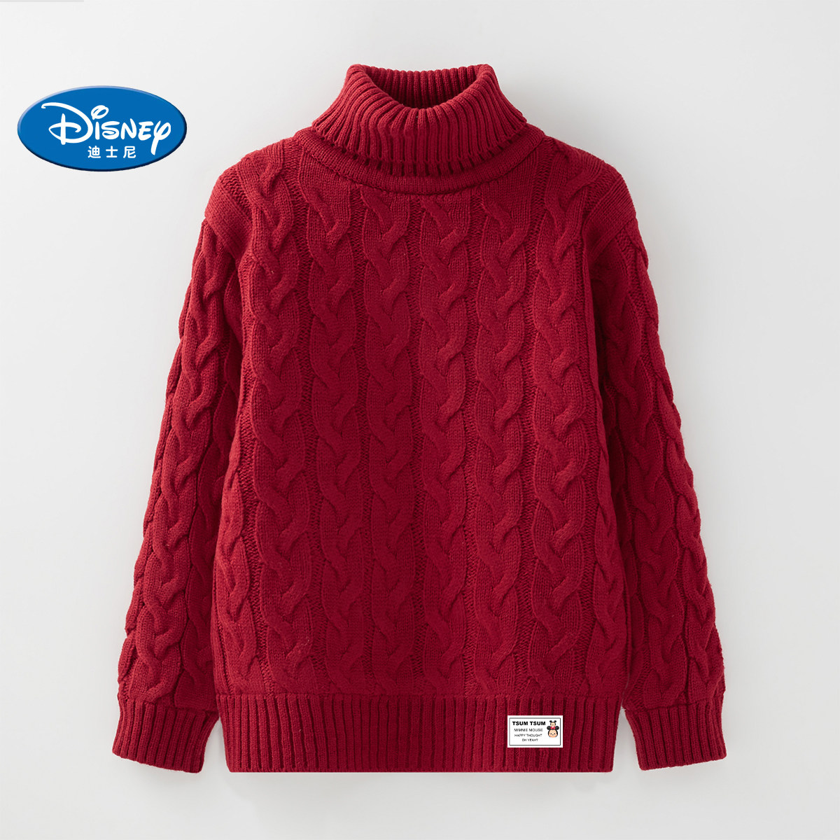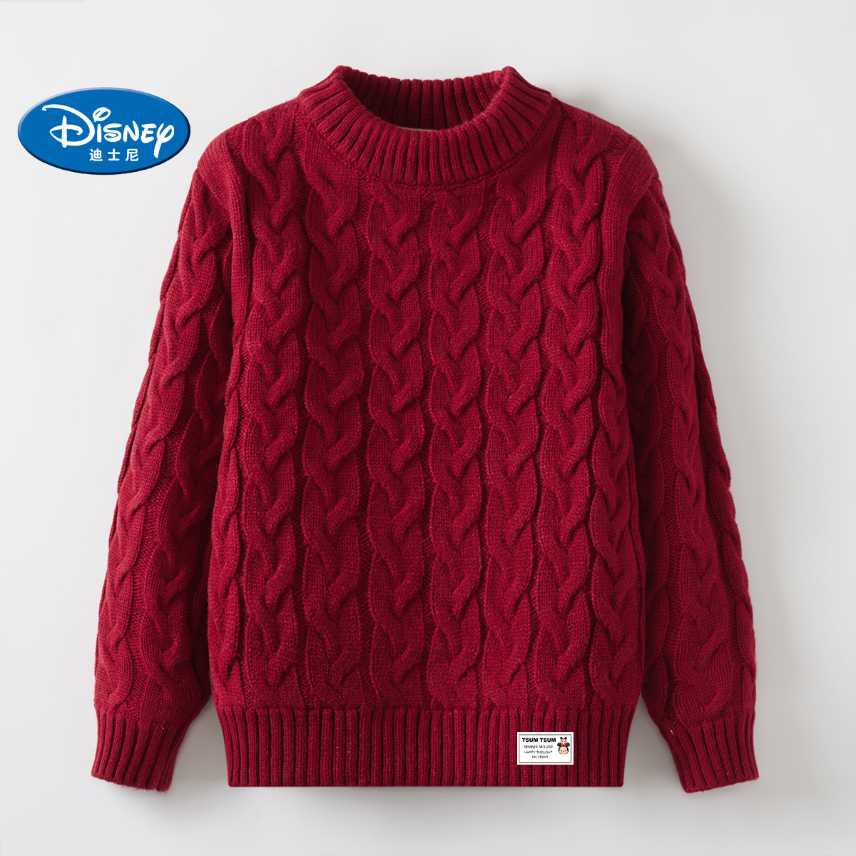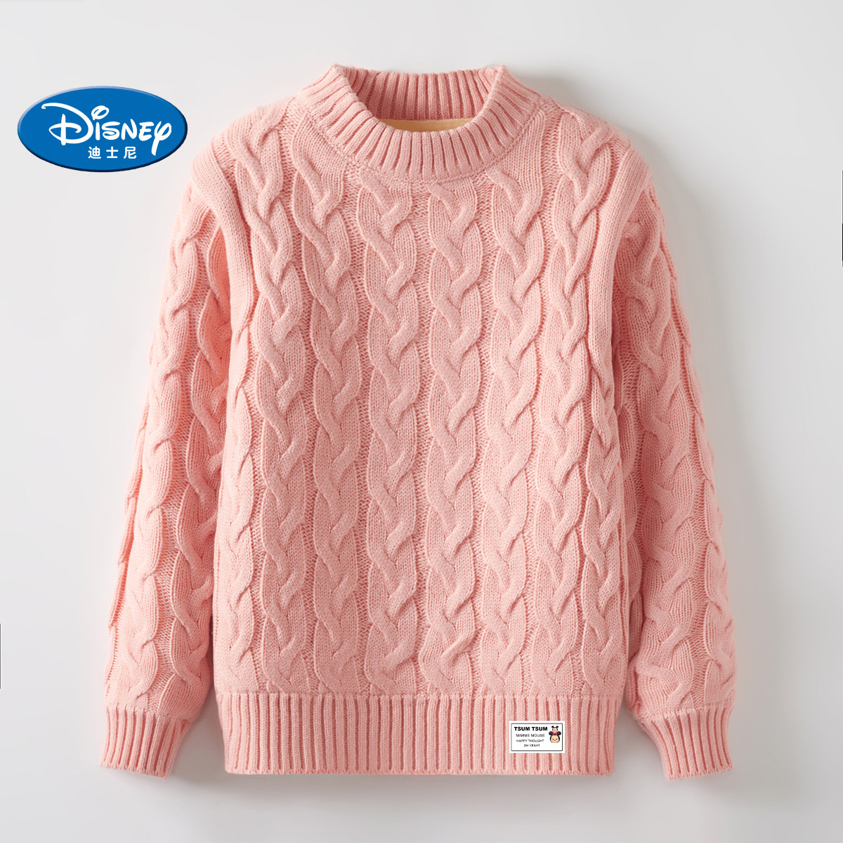 迪士尼女童毛衣2025新款中大童加绒加厚针织衫冬季白色国货红色