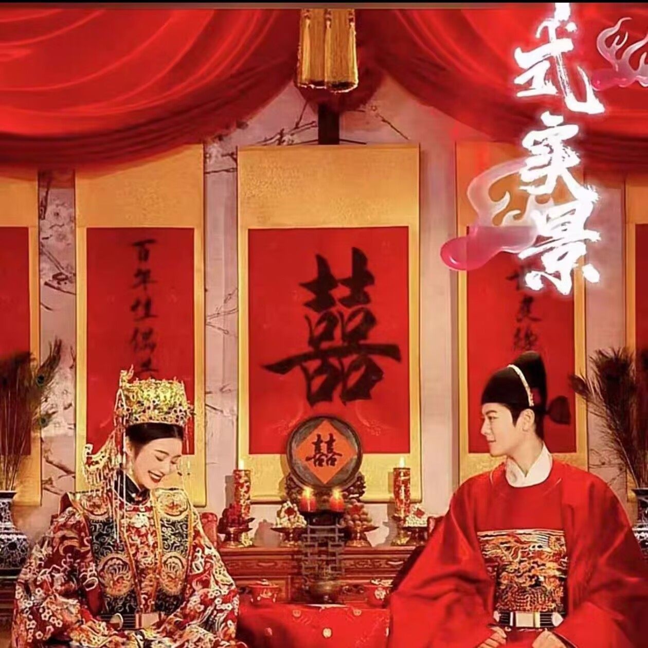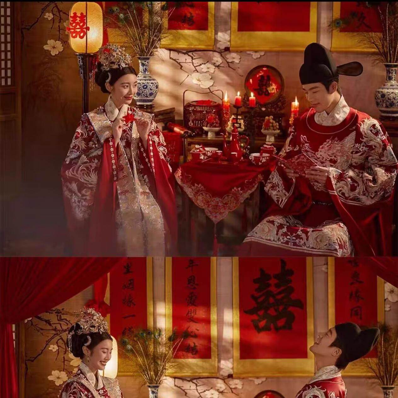 新款婚纱照摄影道具结婚喜嫁中式婚纱照秀禾复古新娘囍子对联背景