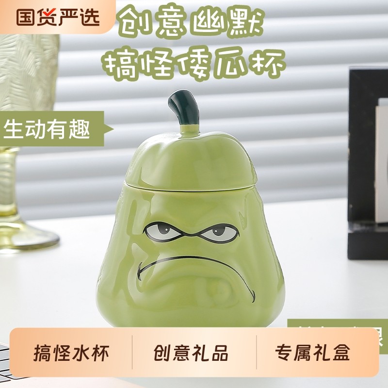 带盖马克杯窝瓜杯子陶瓷水杯情侣生日礼物女生实用搞怪高颜值喝水