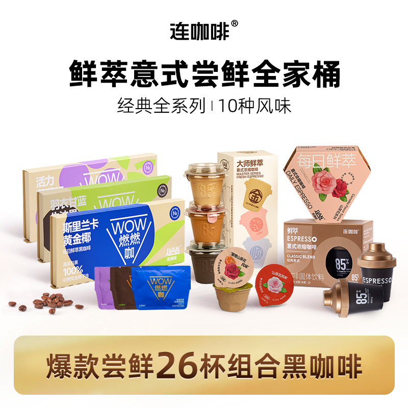 连咖啡鲜萃意式浓缩黑咖啡全家桶组合装