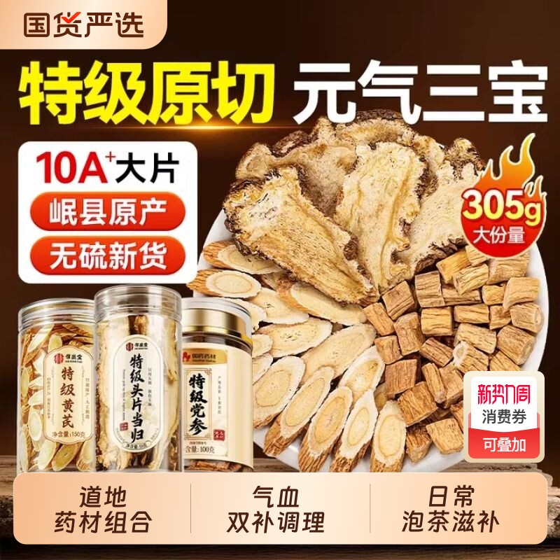 当归中药材甘肃特级党参黄芪三宝组合装补气养血无硫正品旗舰店
