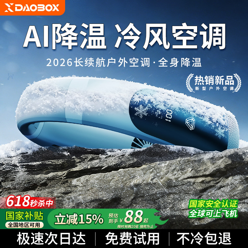 DAOBOX/导匣2026新款挂脖小风扇无叶制冷空调静音usb充电超长续航学生随身电风扇小型便携式户外夏天降温神器