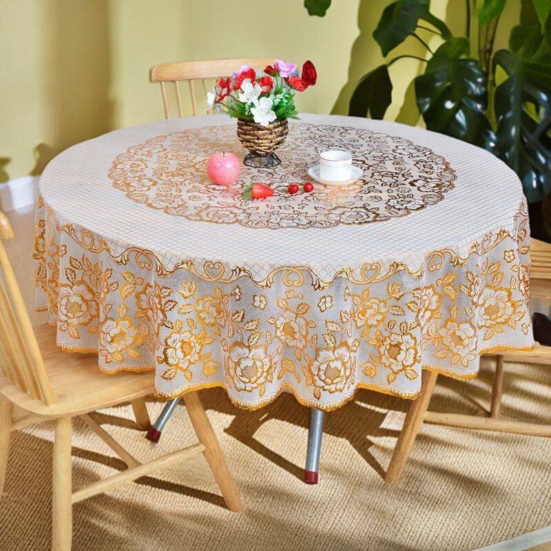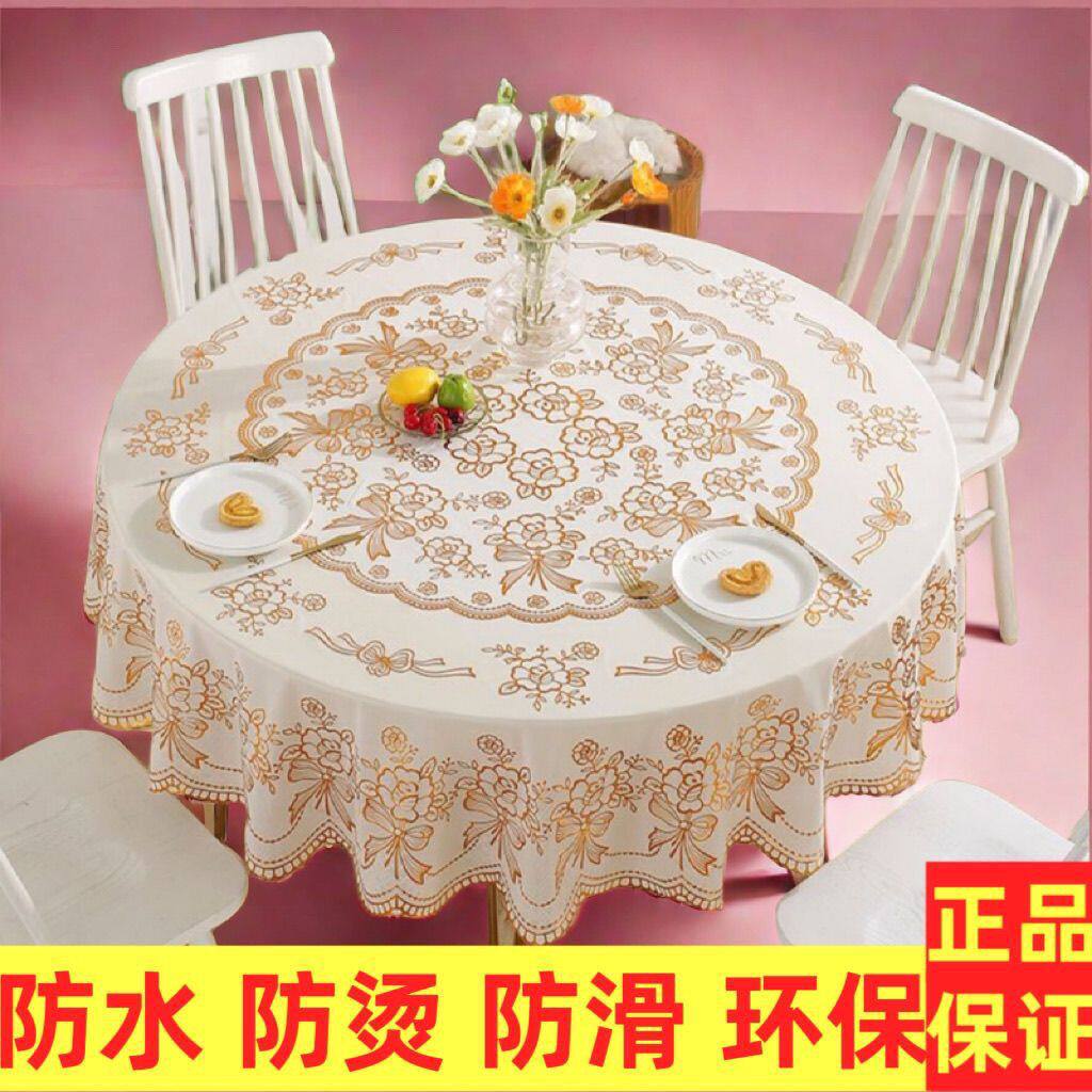 网红款烫金防水防烫免洗防滑PVC欧式家用酒店饭店大圆桌布