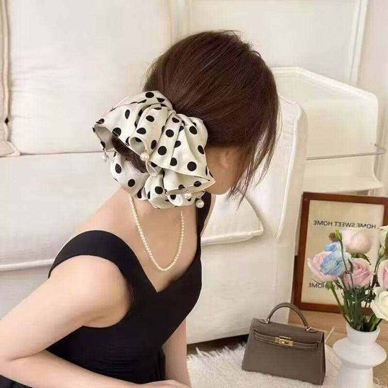 新款气质韩版波点大肠发圈洋气头花精致头绳法式皮筋时尚发绳头饰