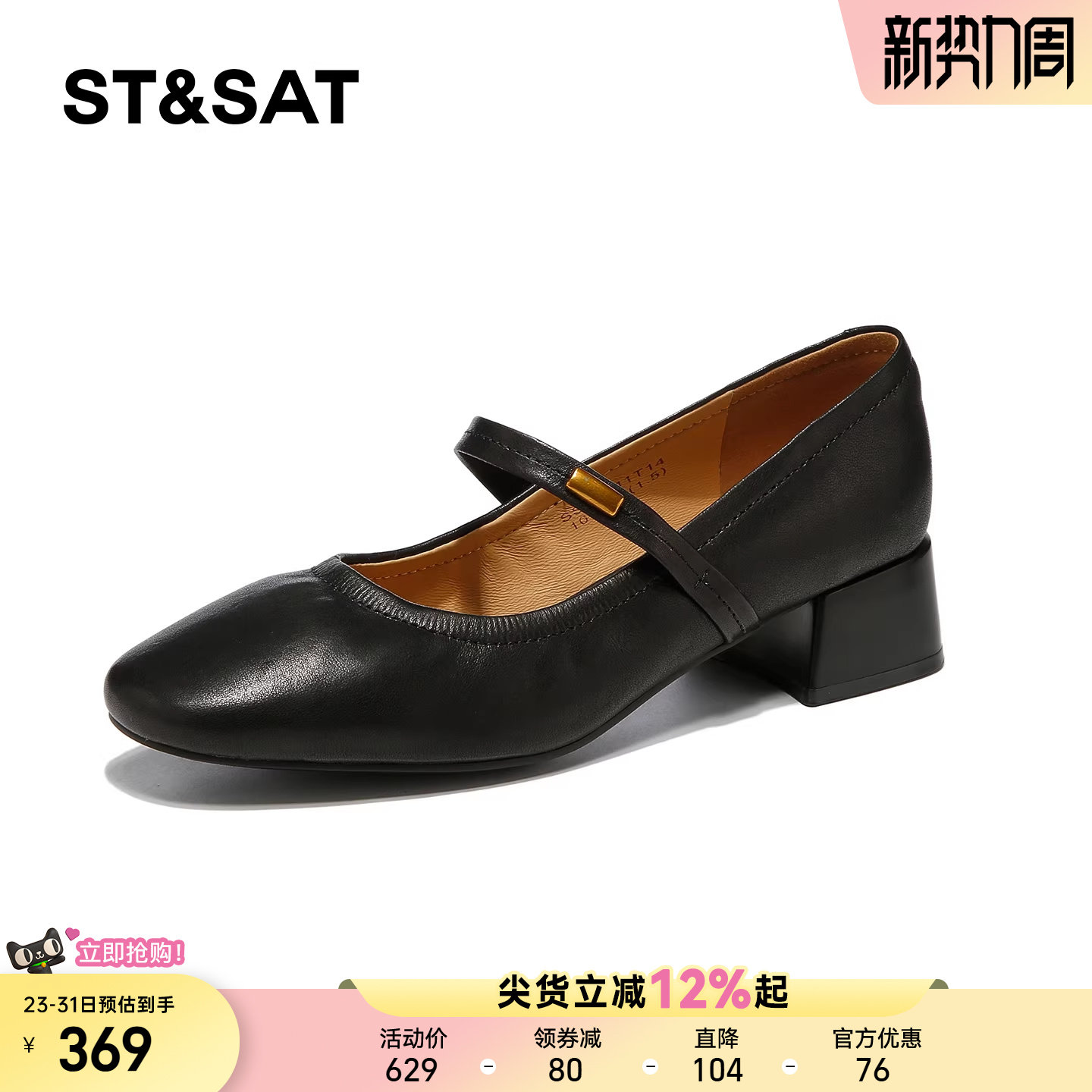 星期六复古玛丽珍鞋女粗跟春季新款方头一字带中跟单鞋气质高跟鞋
