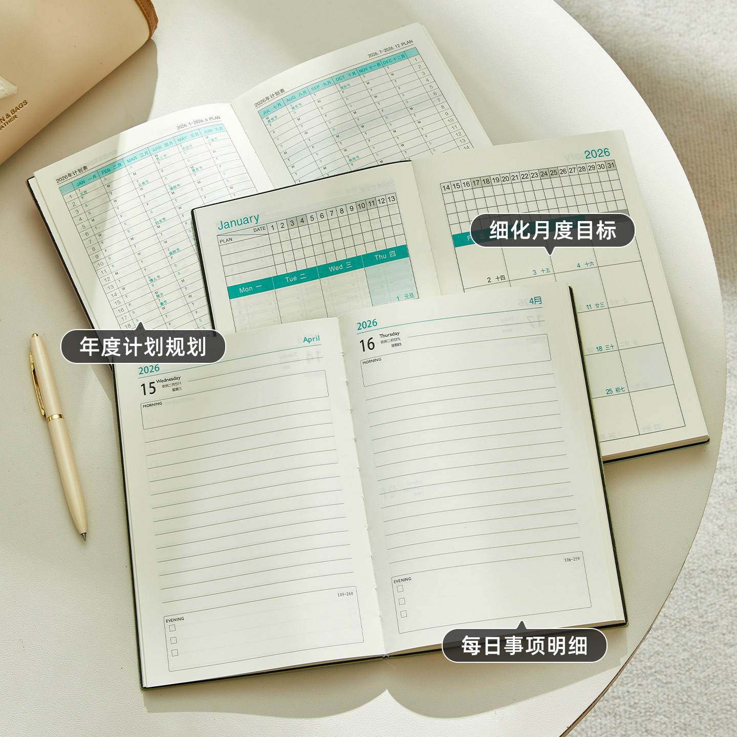 2026年日程本新款计划表365天每日时间管理效率手册大学生日历自律打卡本高颜值记事本文艺精致手账笔记本子