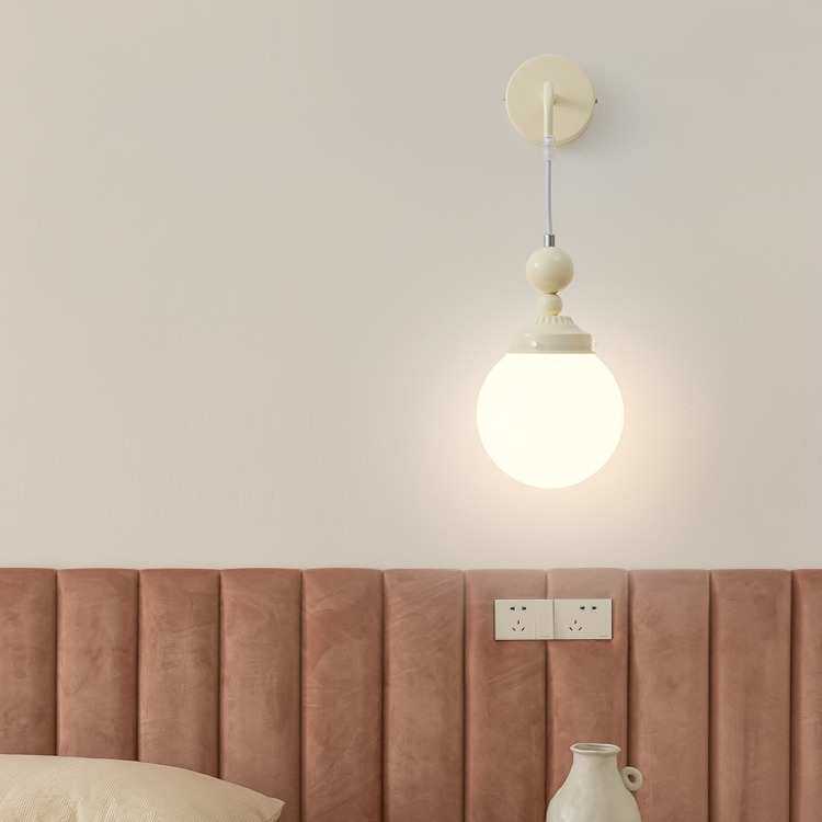 北欧奶油风卧室床头壁灯中古网红日式创意简约现代客厅背景墙壁灯