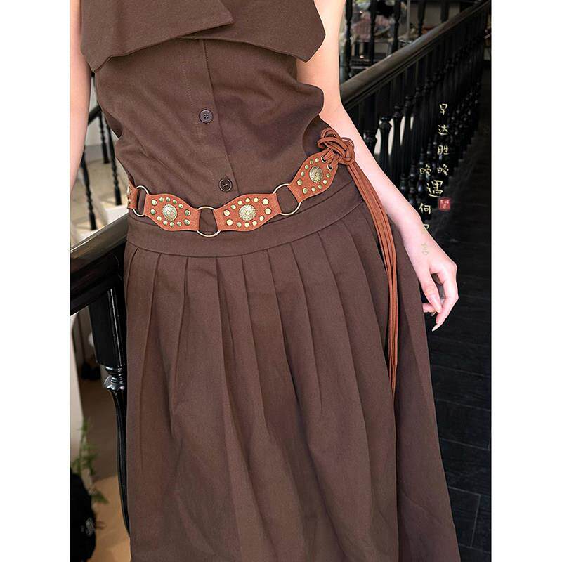 波西米亚棕色编织腰炼 炼 女覆古民族风腰带高级感配裙子装饰配饰