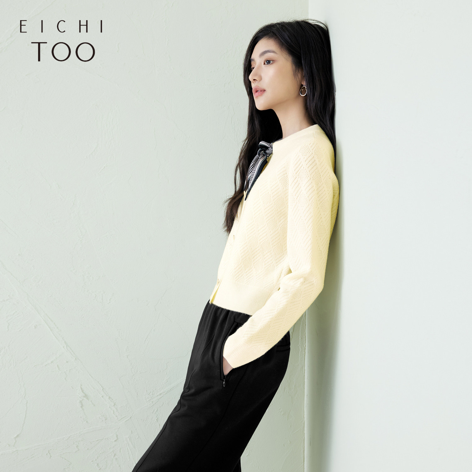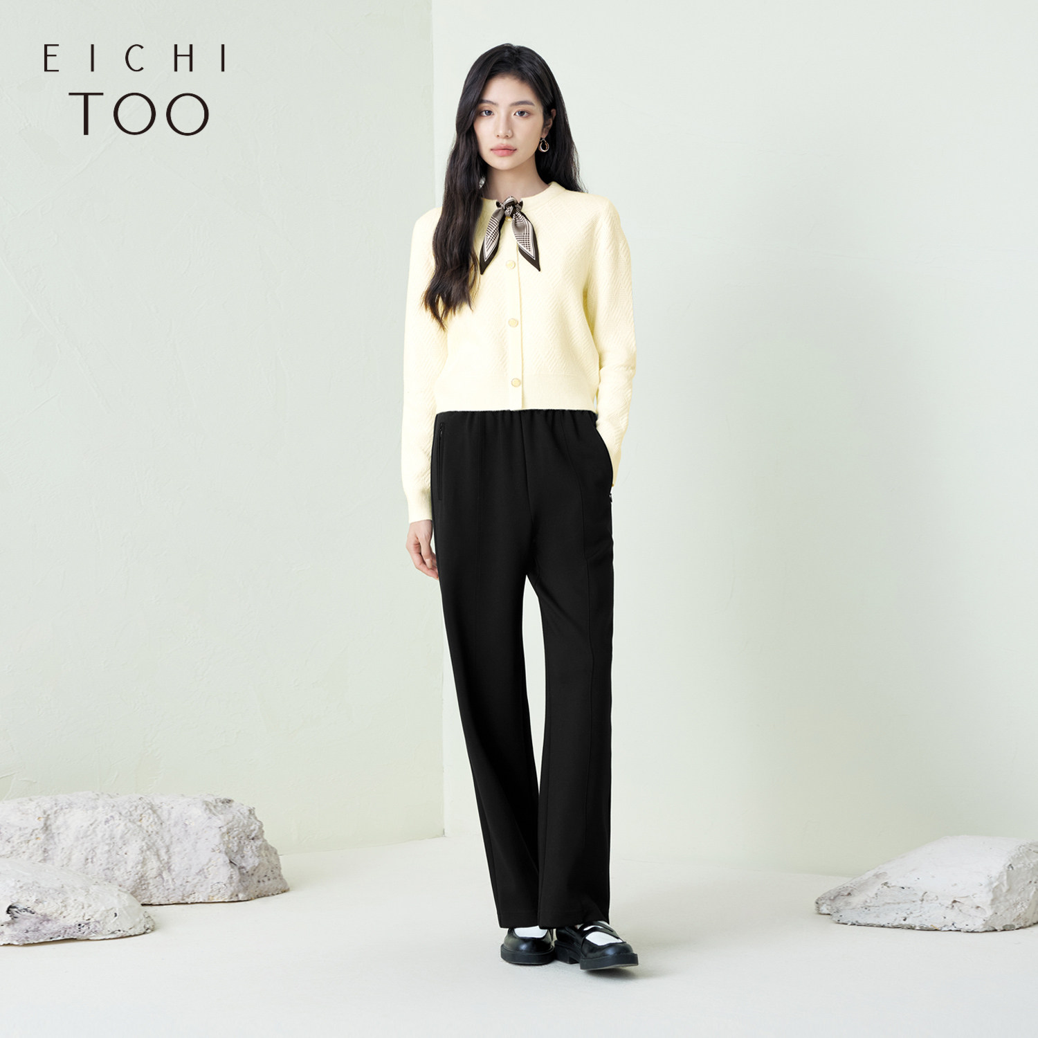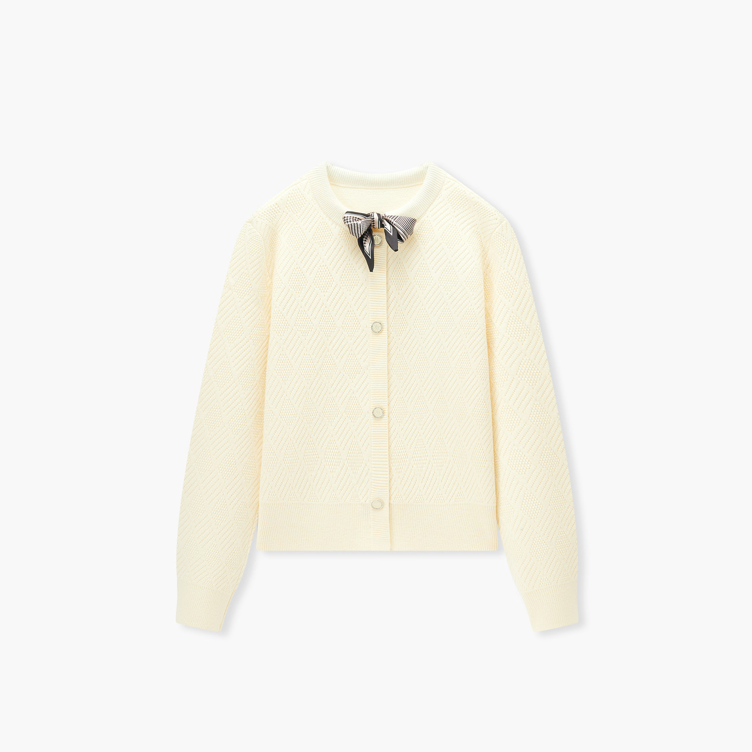 爱居兔优雅时尚针织衫女2025年秋季新款可拆卸丝巾设计套头毛衫