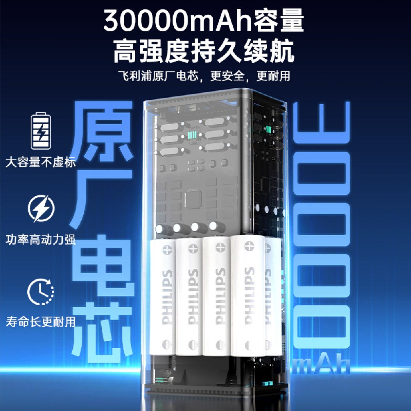 【国家3C认证】飞利浦户外移动电源100W(瓦)大功率大容量家用电器数码设备220V插座接口露营电源充电宝