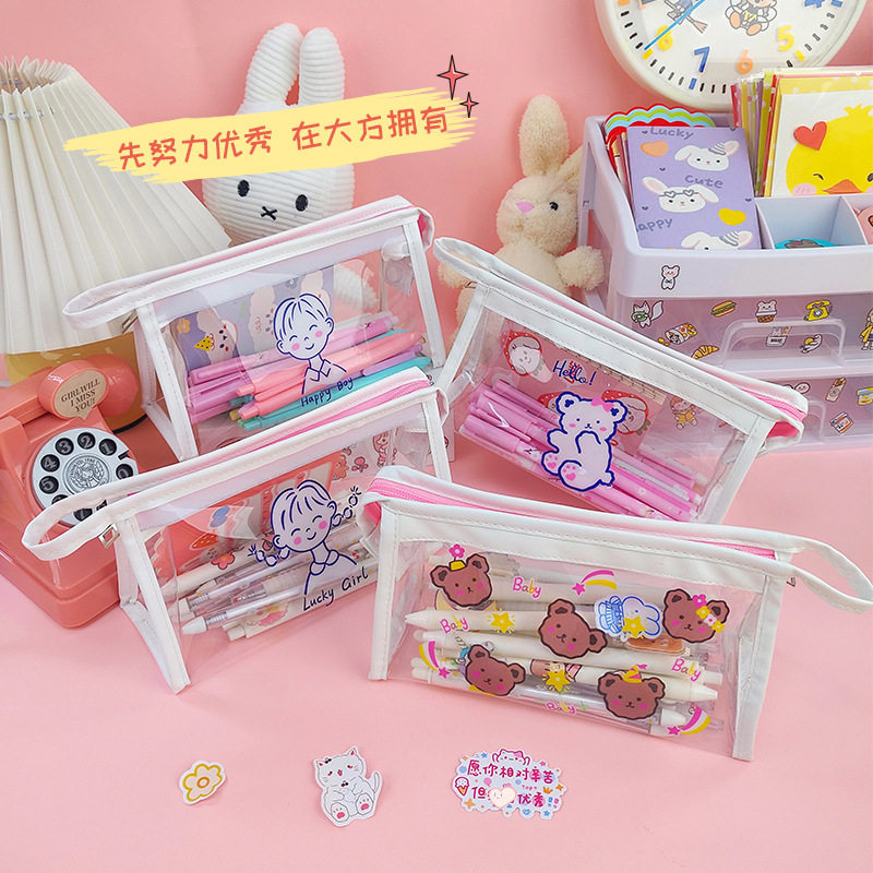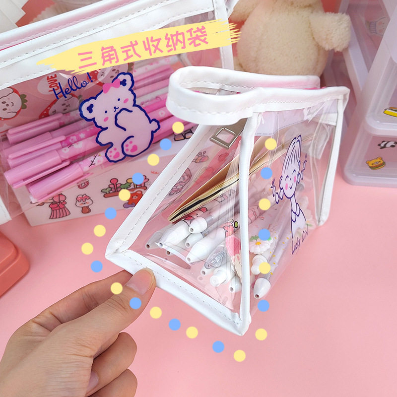 透明PVC笔袋收纳袋化妆包女ins防水少女心便携旅行收纳随身洗漱包