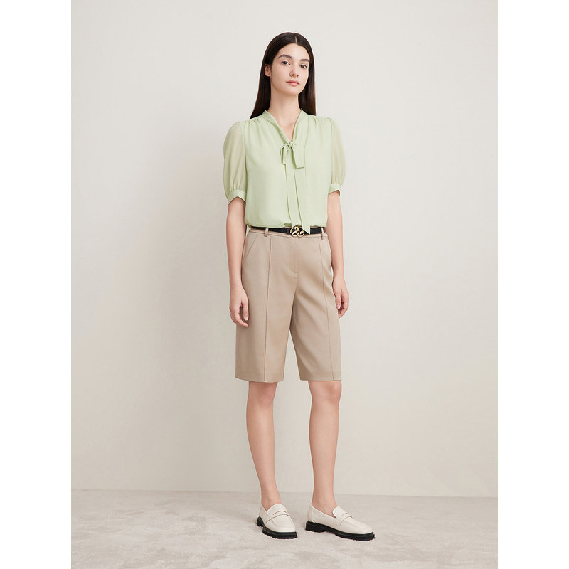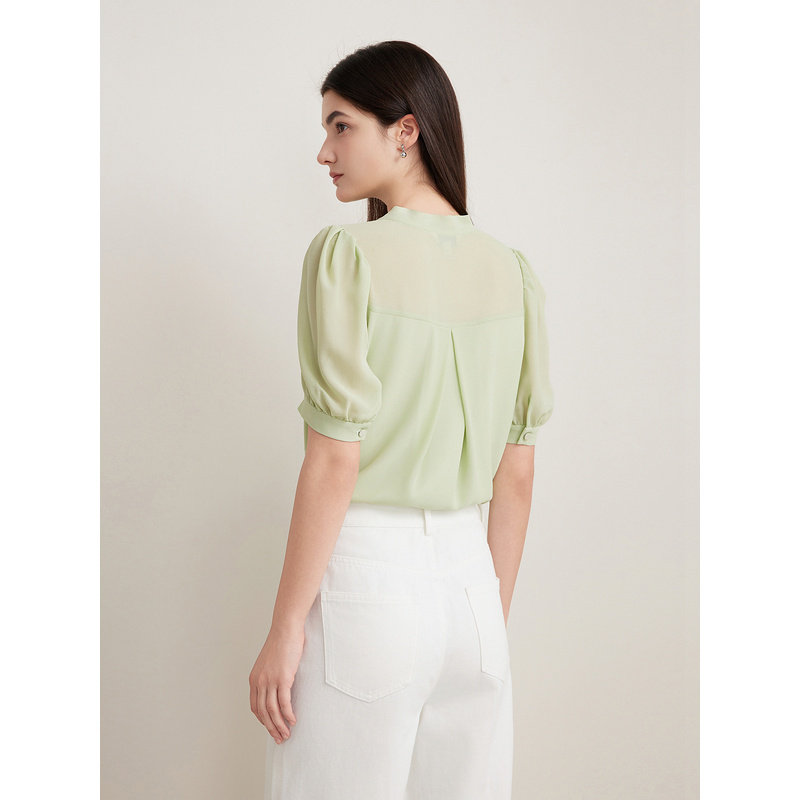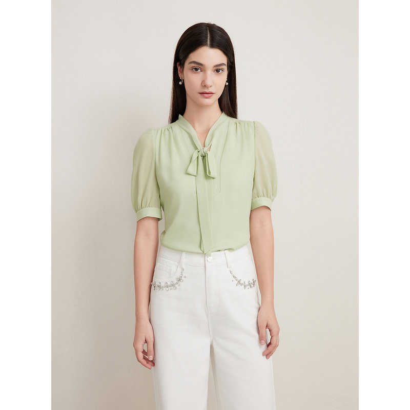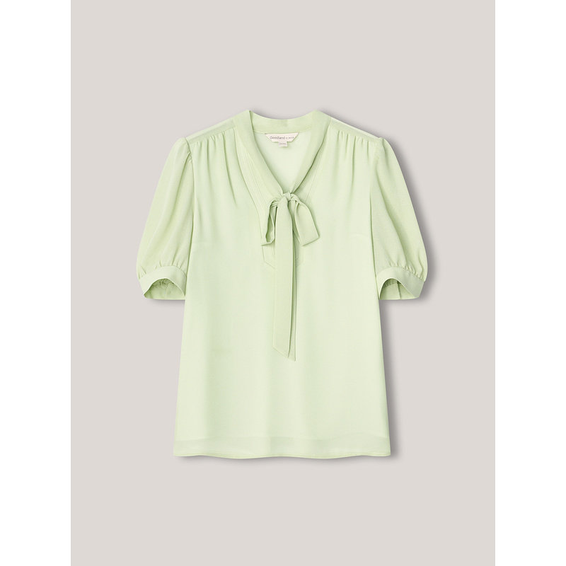 Goodland美地夏季法式系带领衬衫清新绿上衣