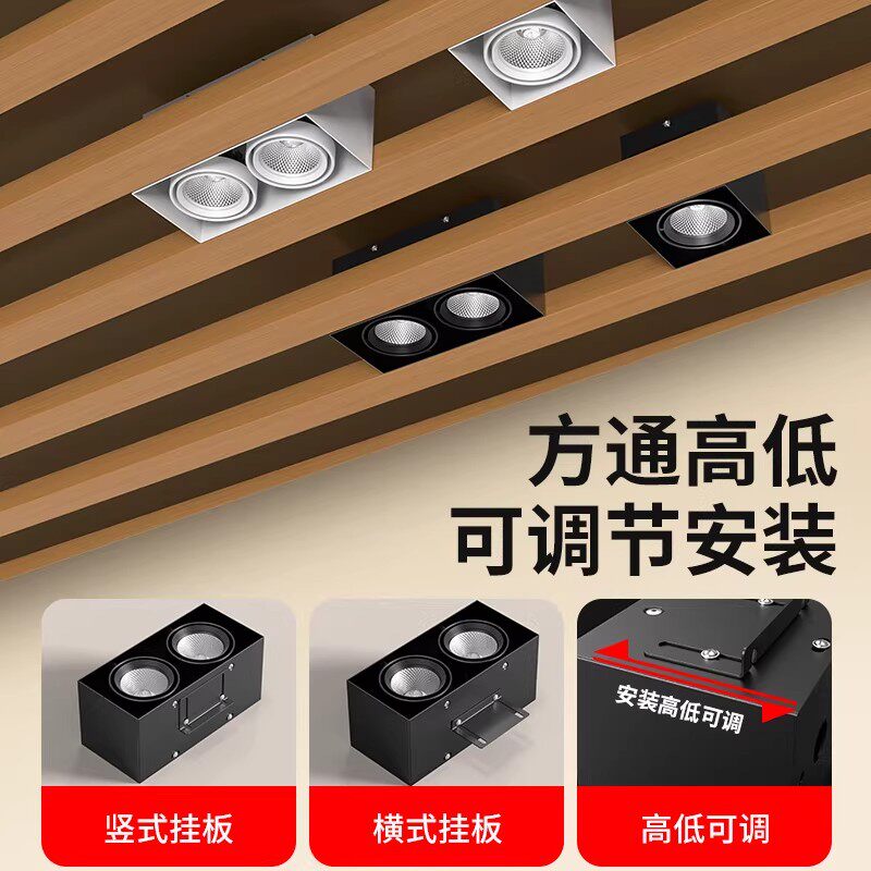 led方通专用灯方形筒灯单双头cob商用店铺铝方通吊顶格栅斗胆射灯