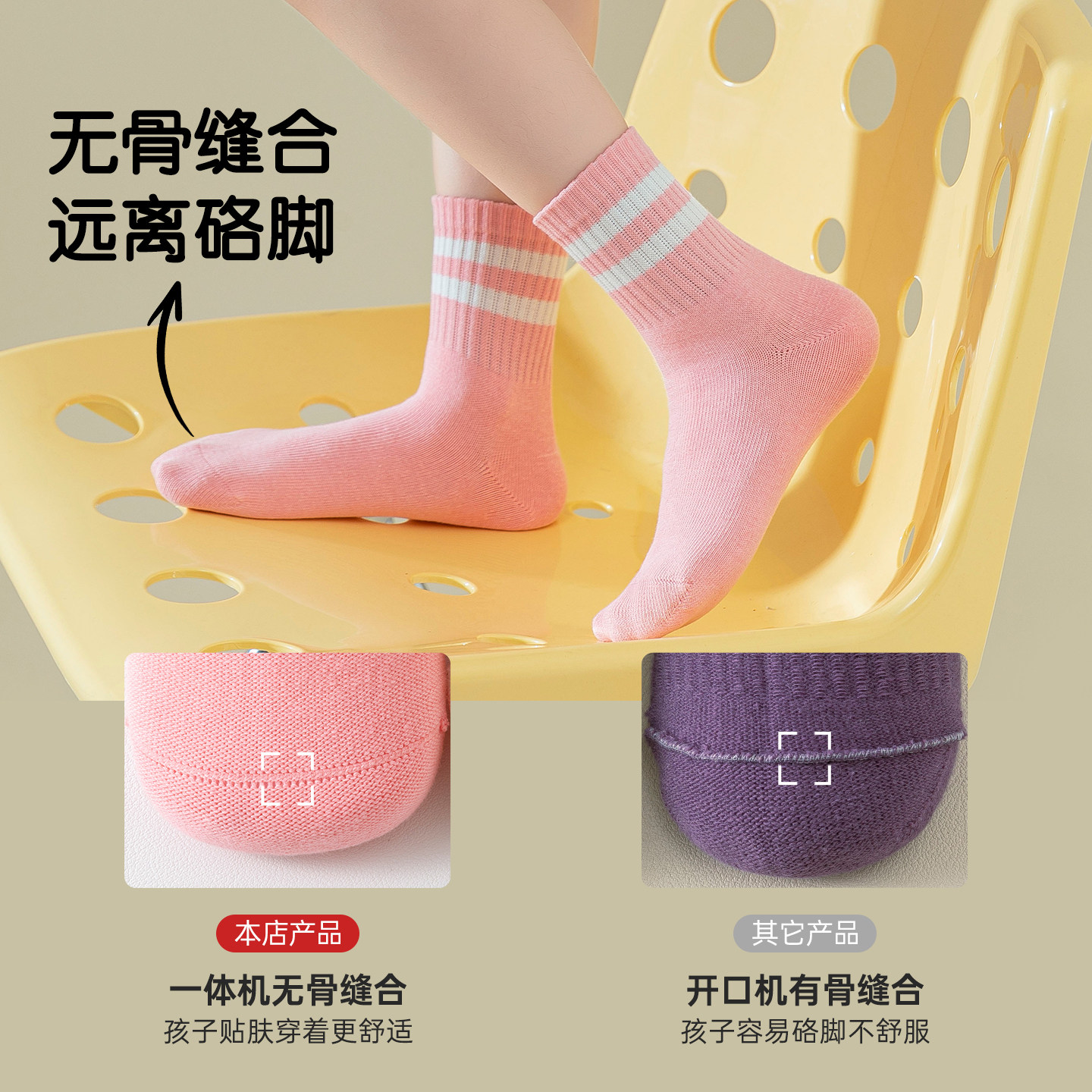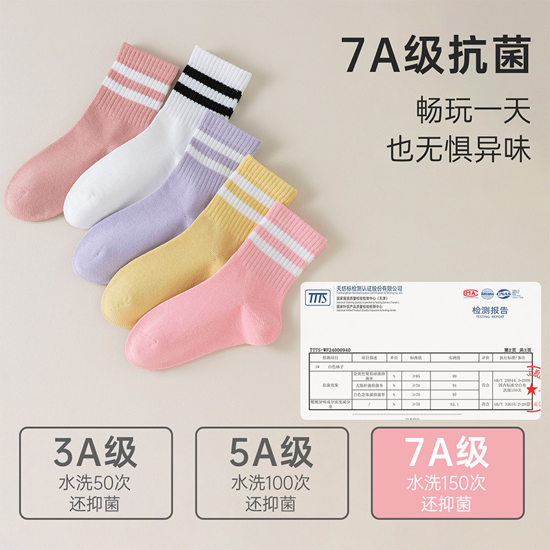 100%棉儿童袜子春秋纯棉A类女童袜7A抗菌防臭秋冬女孩无骨中筒袜