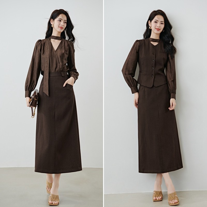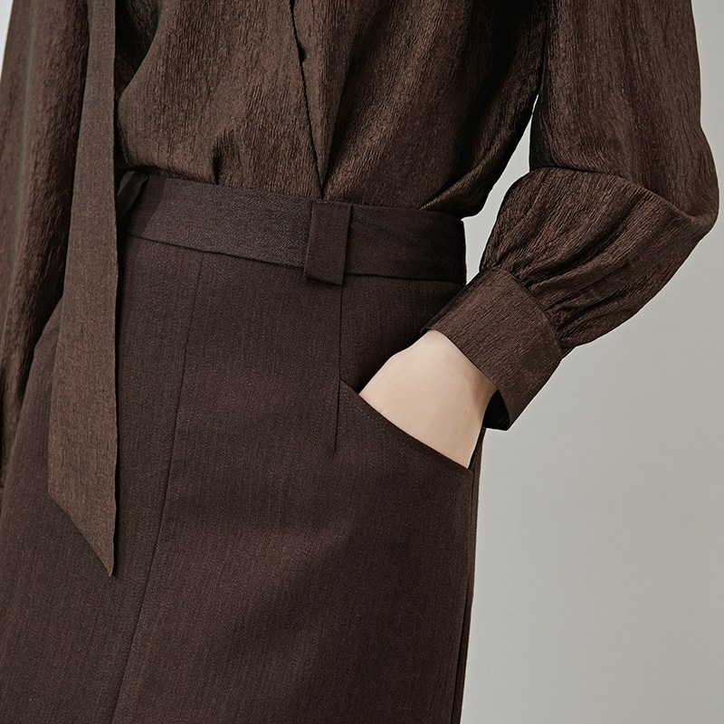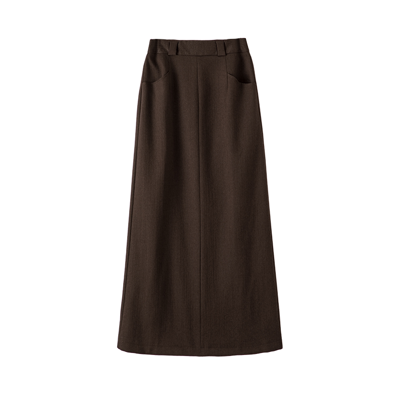 晚白2026年春新款莱赛尔天丝亚麻直筒裙挺括修身摩卡棕通勤半身裙