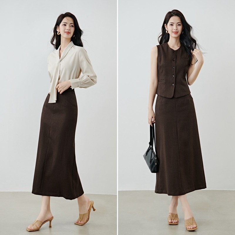 COCOBELLA设计感高腰通勤OL遮胯半身裙西装裙过膝毛呢长裙HS613-2