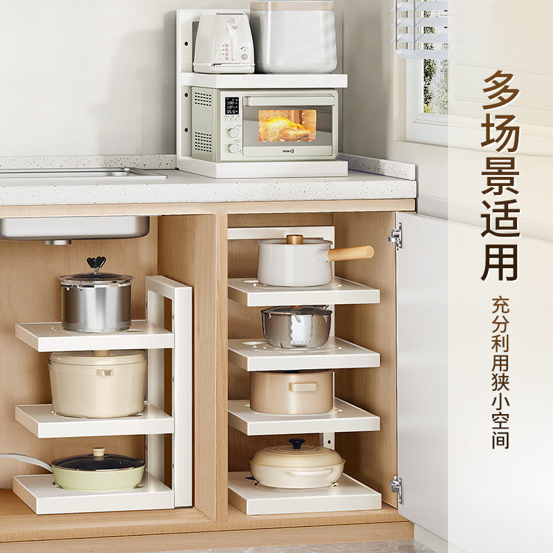 厨房置物架家用多功能锅具收纳架多层橱柜下水槽灶台分层放锅架子