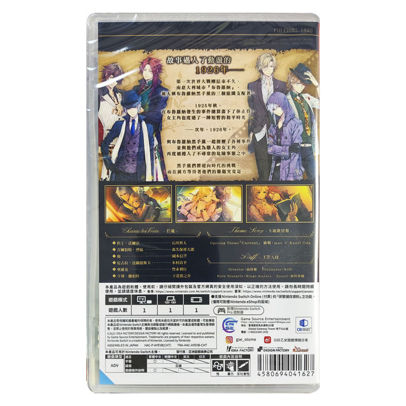 香港直邮 任天堂NS卡带 中文 虔诚之花的晚钟 1926 -Episodio1926- Nintendo Switch 乙女游戏 现货
