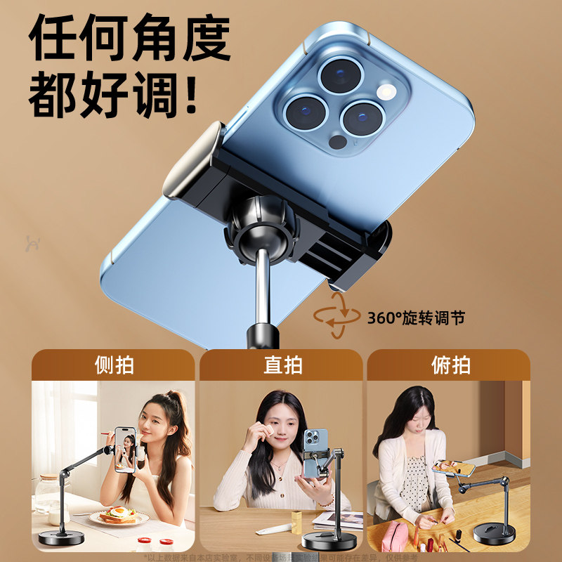 专业俯拍】手机支架桌面直播自拍杆三脚架拍美食录视频神器网课专用开箱vlog老师书法俯视拍摄带补光灯支撑架