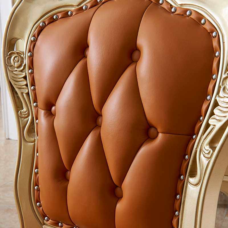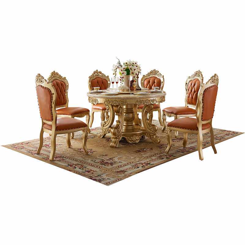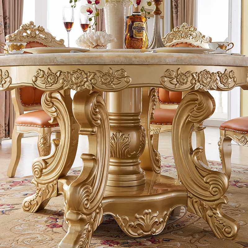 欧式餐桌大理石圆餐桌椅组合 家用实木雕花圆桌餐厅带转盘吃饭桌