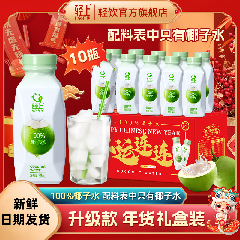 轻上100%椰子水含电解质孕妇泰国椰汁瓶装椰子汁饮品整箱T果汁