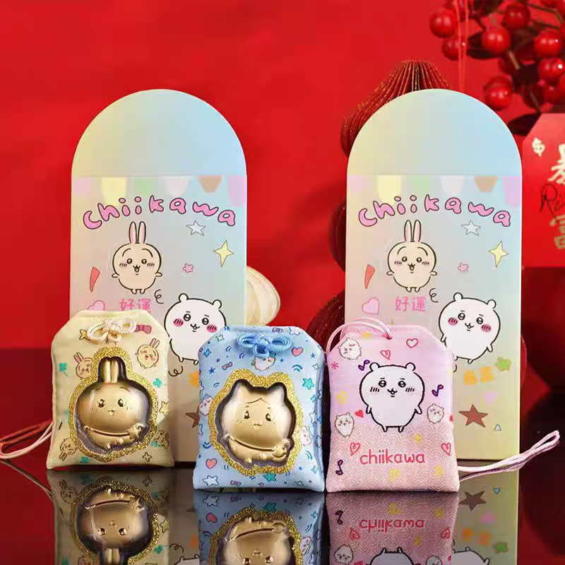 水贝足金999黄金送礼礼盒chiikawa周边吉伊小八乌萨奇福袋挂件