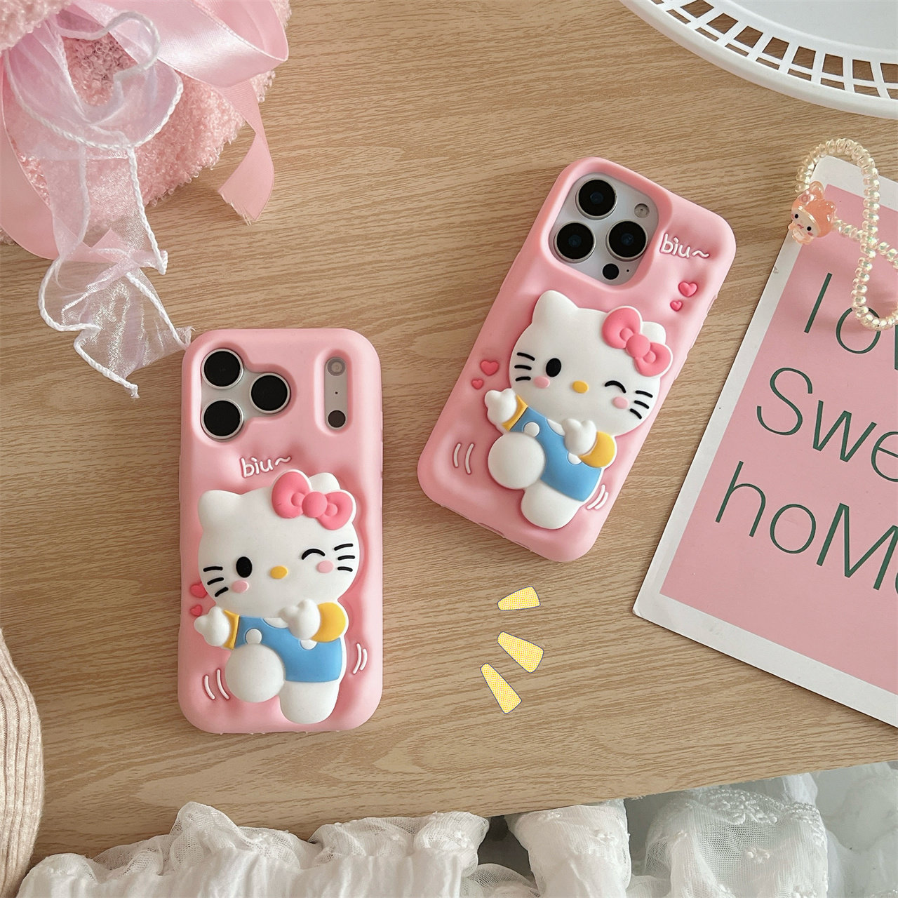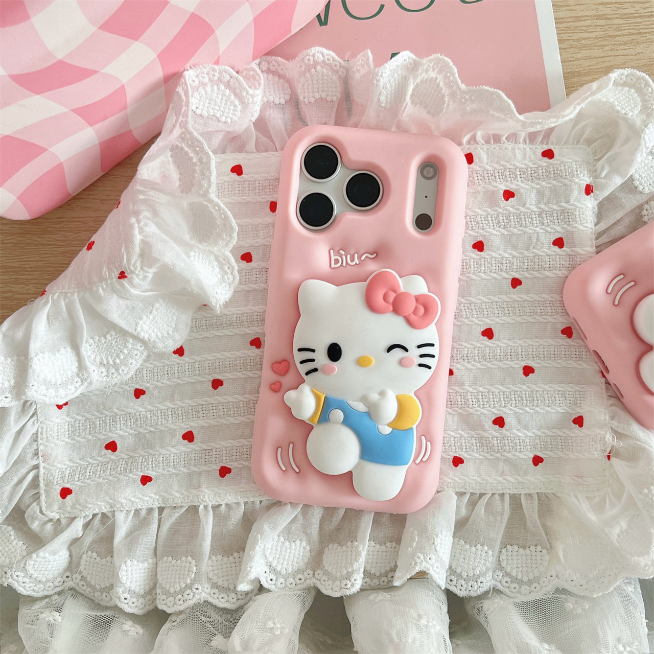 HELLOKITTY比耶凯蒂猫立体公仔适用iPhone17ProMax手机壳可爱猫咪苹果16pro硅胶套卡通14/15PM保护套17软壳13