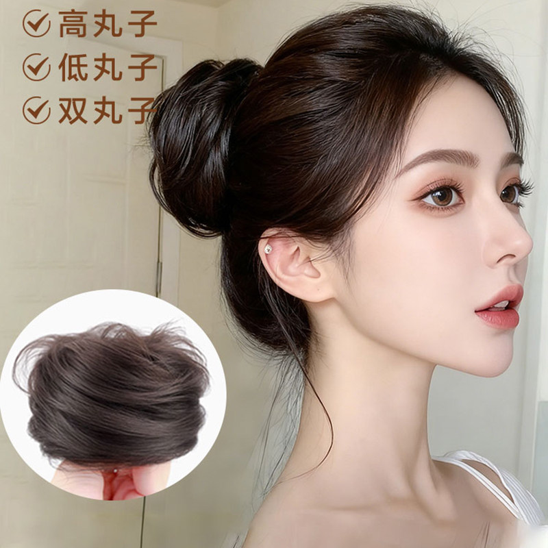 真发丸子头假发圈蓬松自然花苞头盘发发髻假丸子假发包女卷发神器