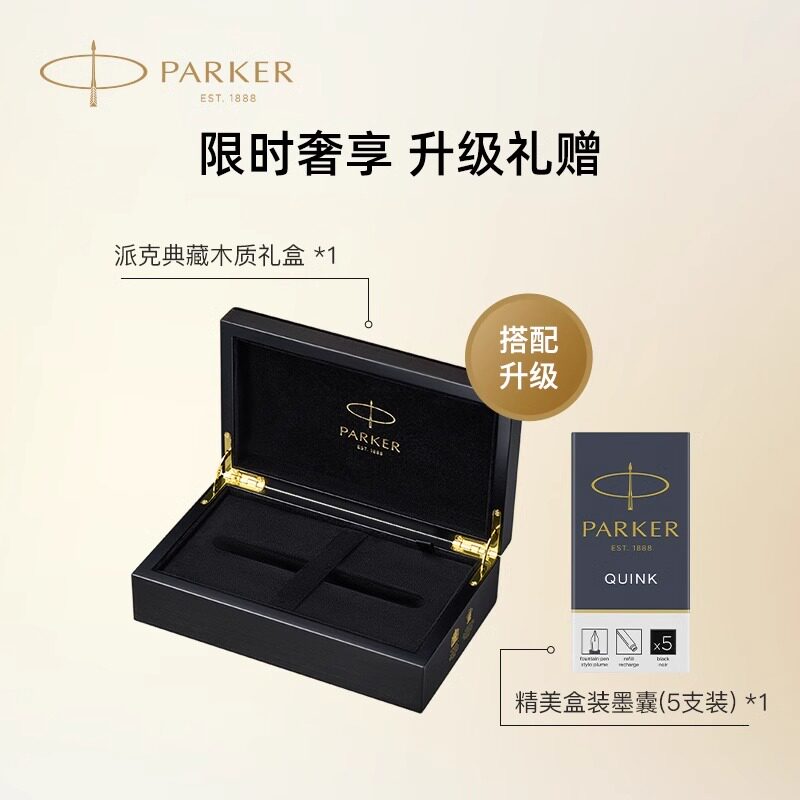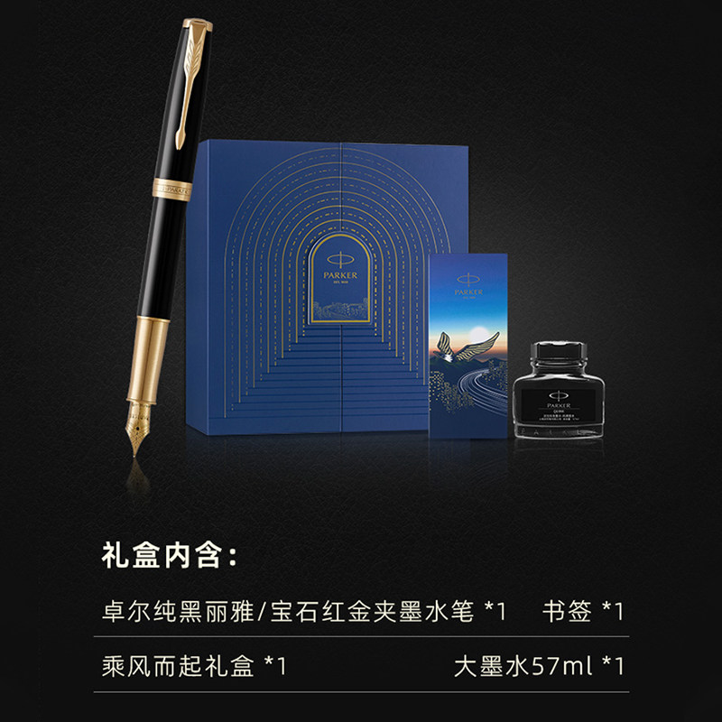 PARKER/派克卓尔18K纯黑丽雅金夹墨水笔乘风而起礼盒商务办公书写送礼高档钢笔签字笔