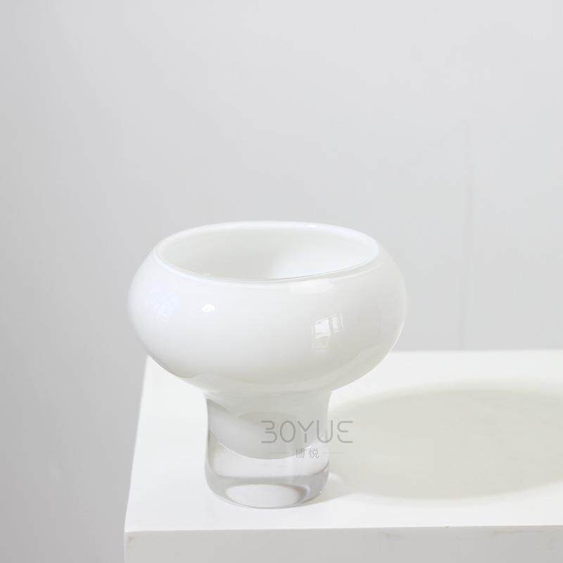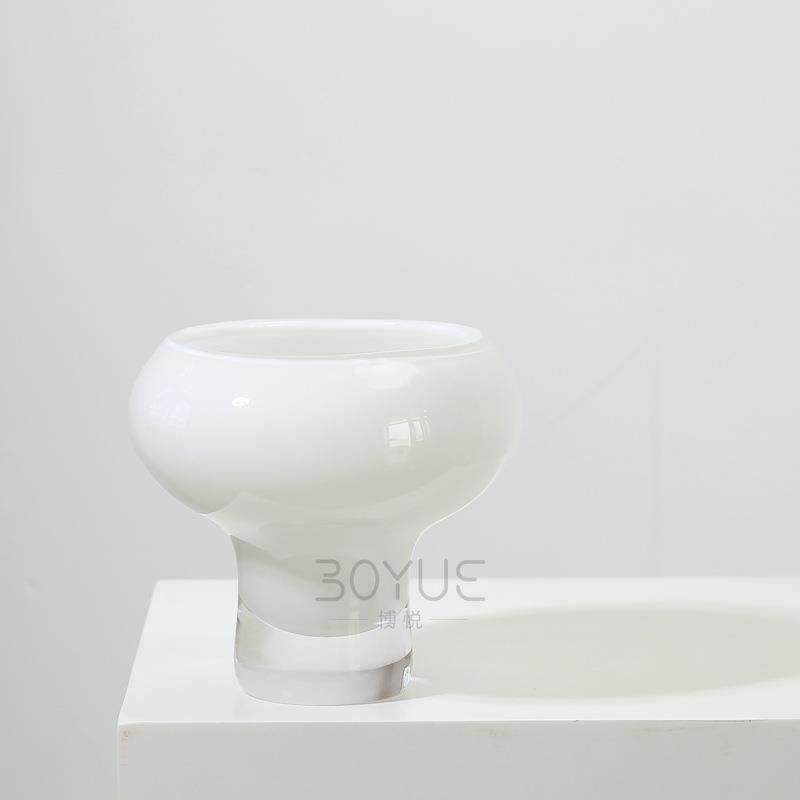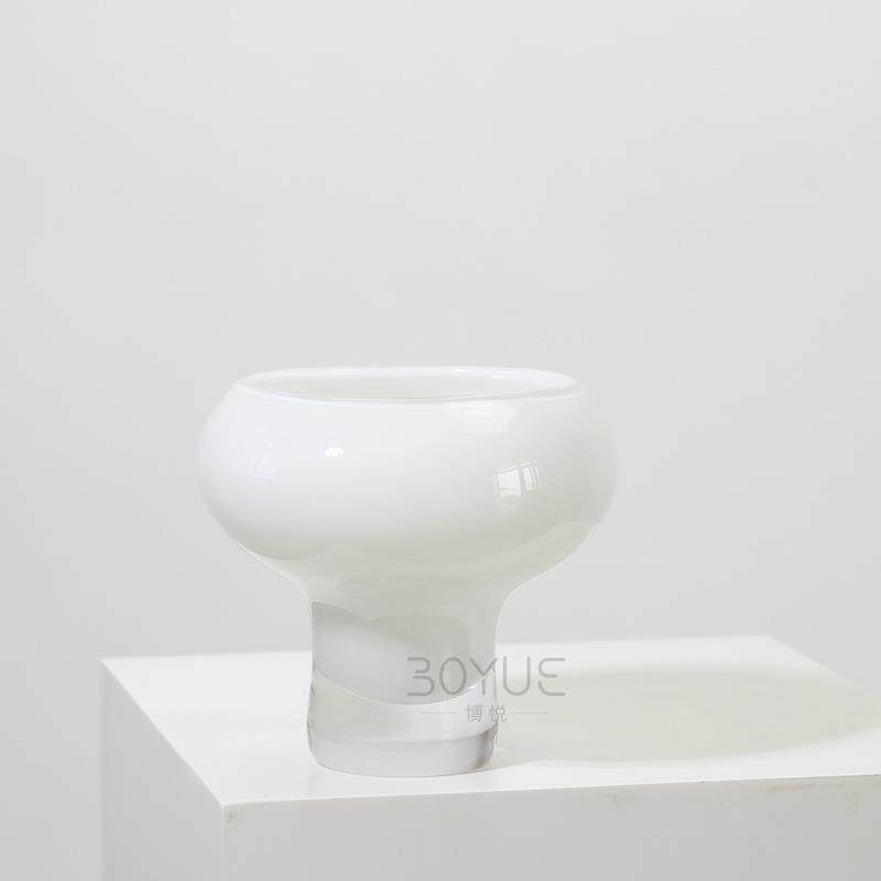 简约现代白色高脚厚底琉璃花瓶售楼处洽谈桌花艺软装小装饰摆件