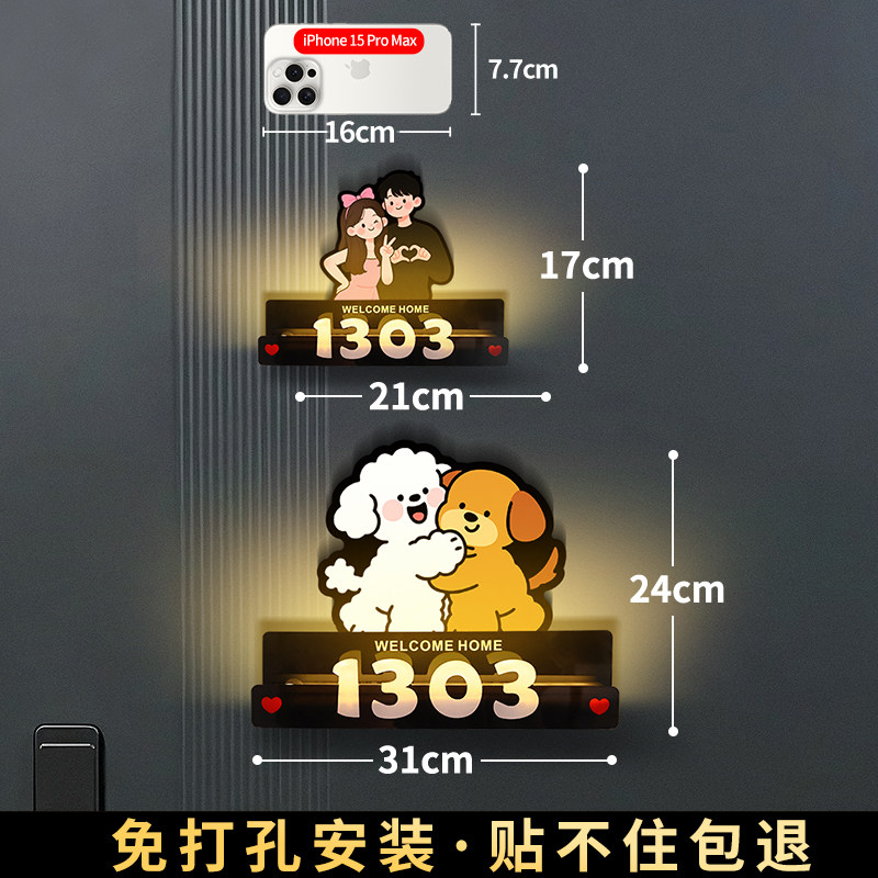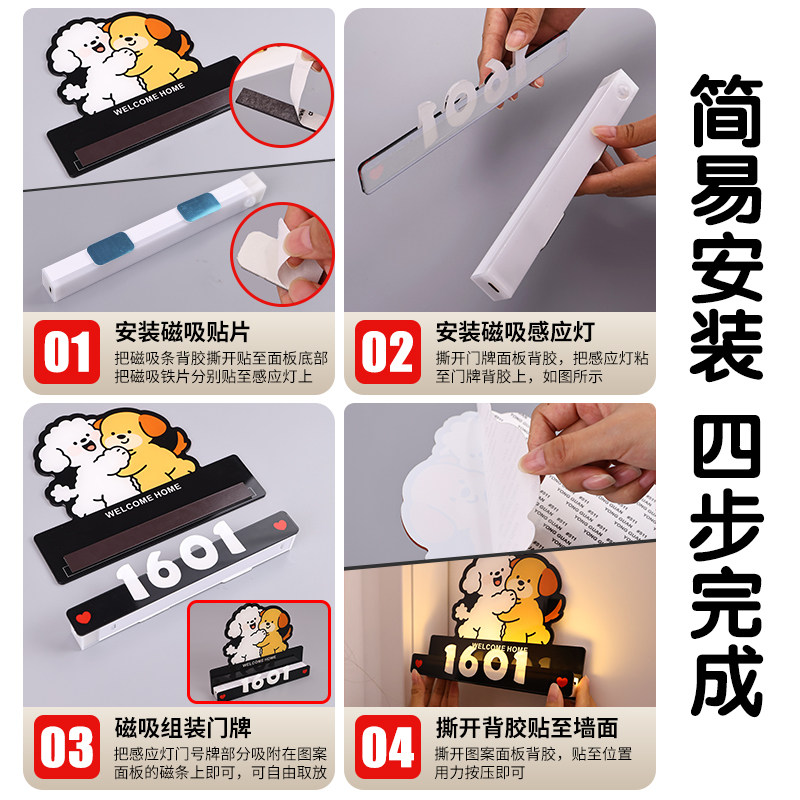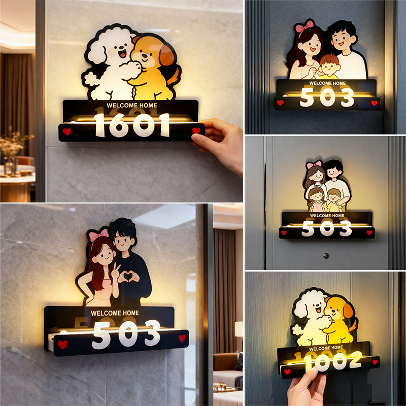 入户门牌号码牌家用定制高级感轻奢创意小区住宅公寓别墅卡通可爱磁吸感应灯发光装饰制作一梯一户免打孔房号