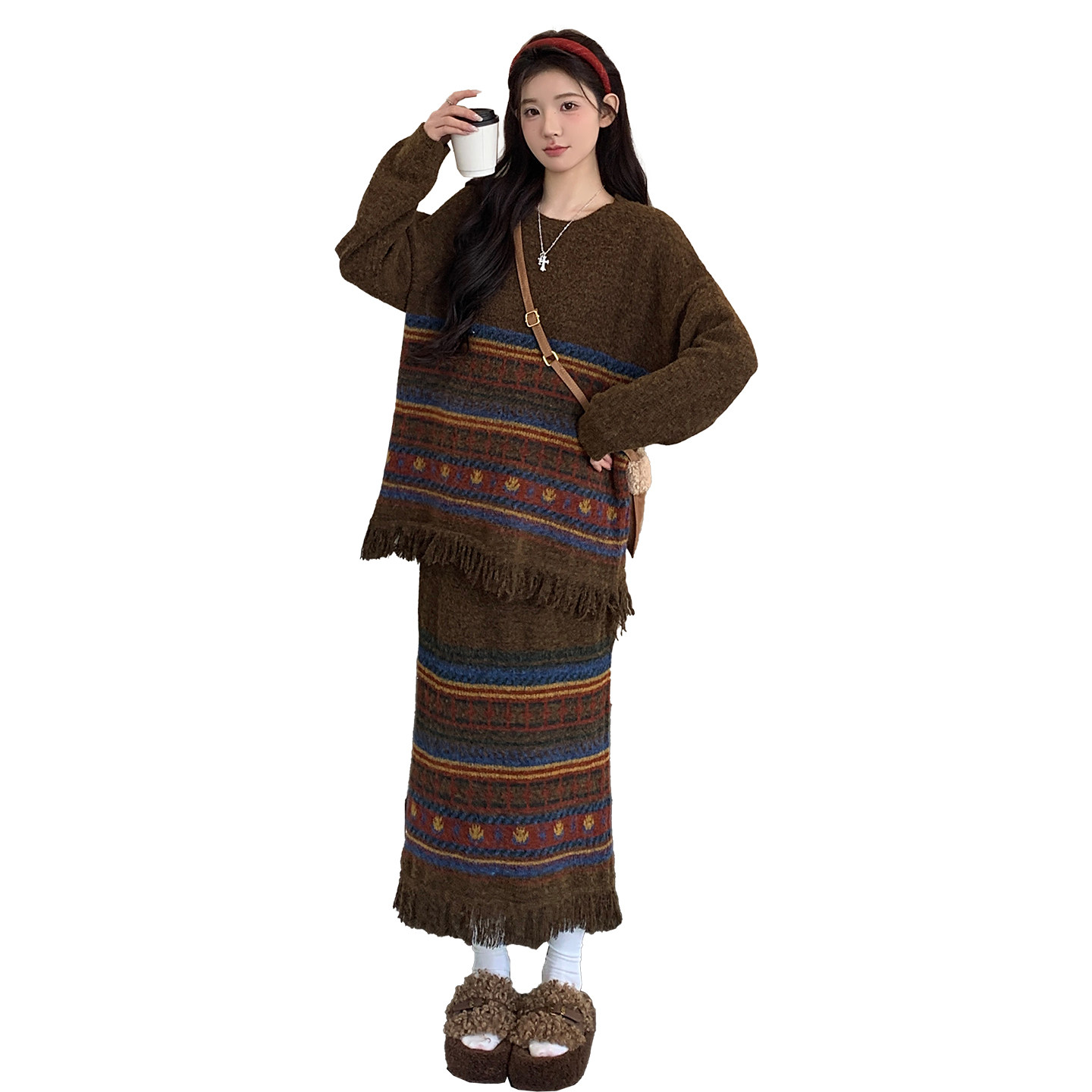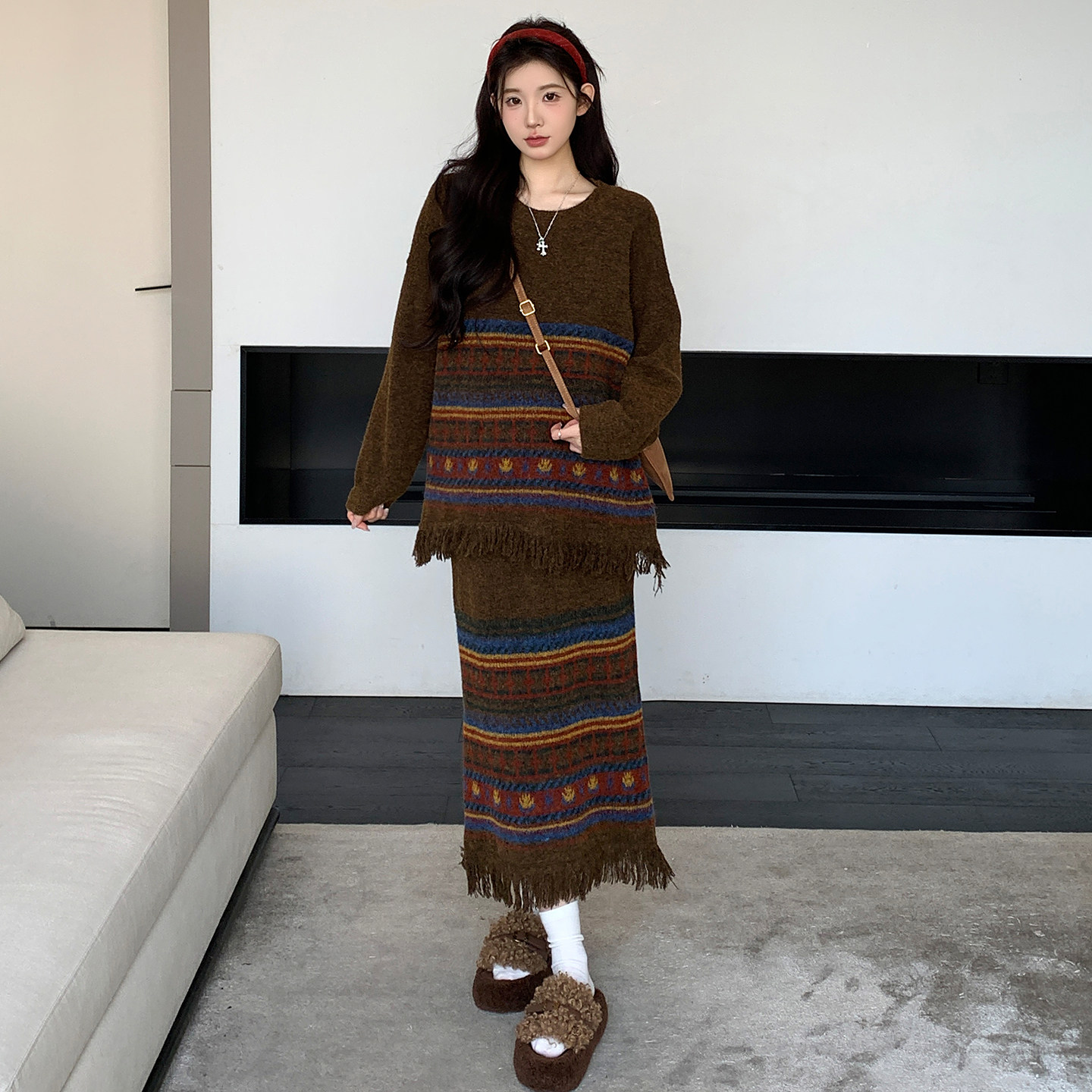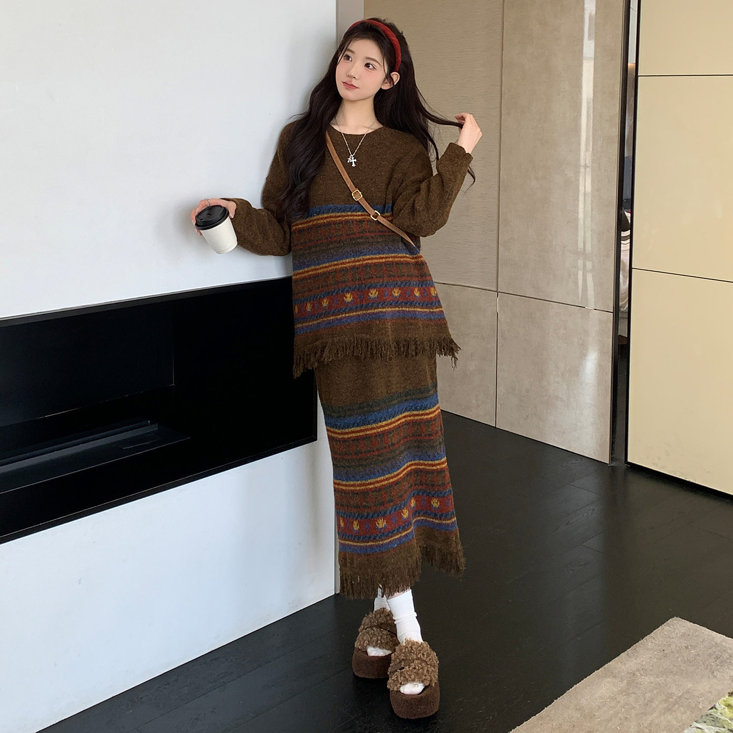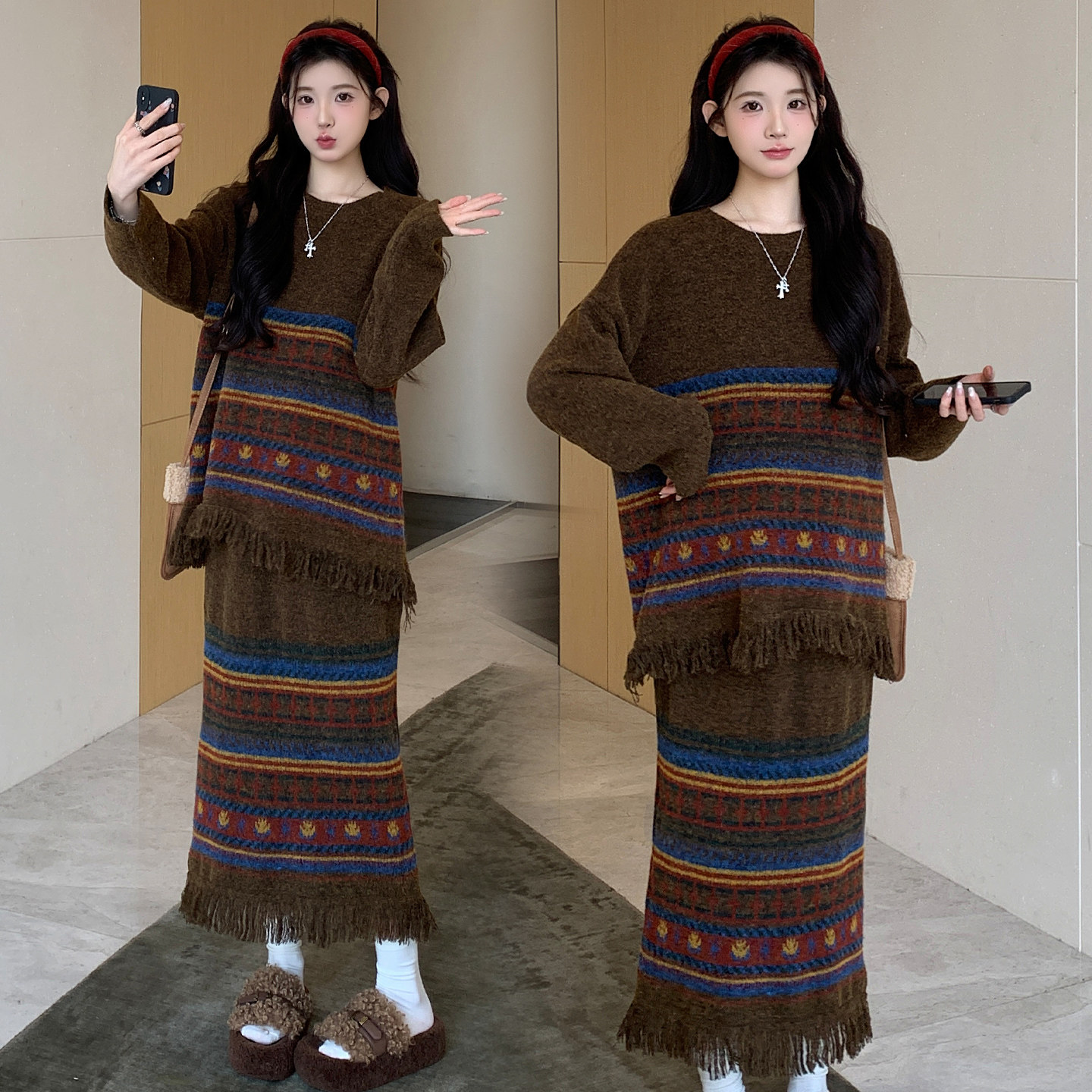 婧麒孕妇装秋冬套装秋冬季新款流苏毛衣半身裙两件套高级感孕妇装