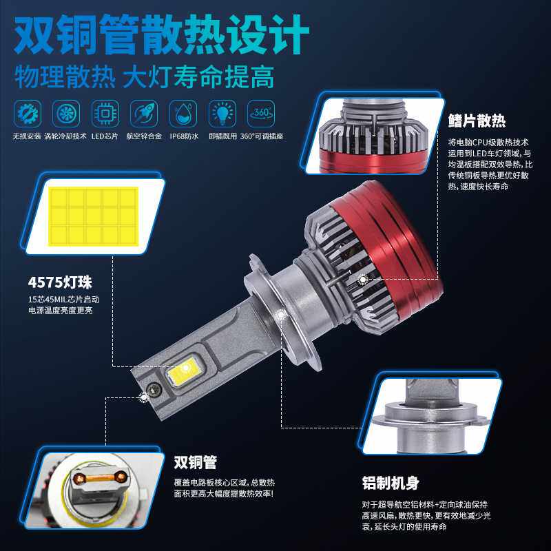 M10汽车led大灯9005 9006 H4 高亮聚光车灯 改装远近光一体前照灯